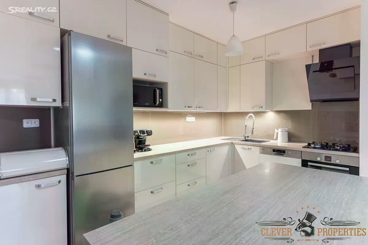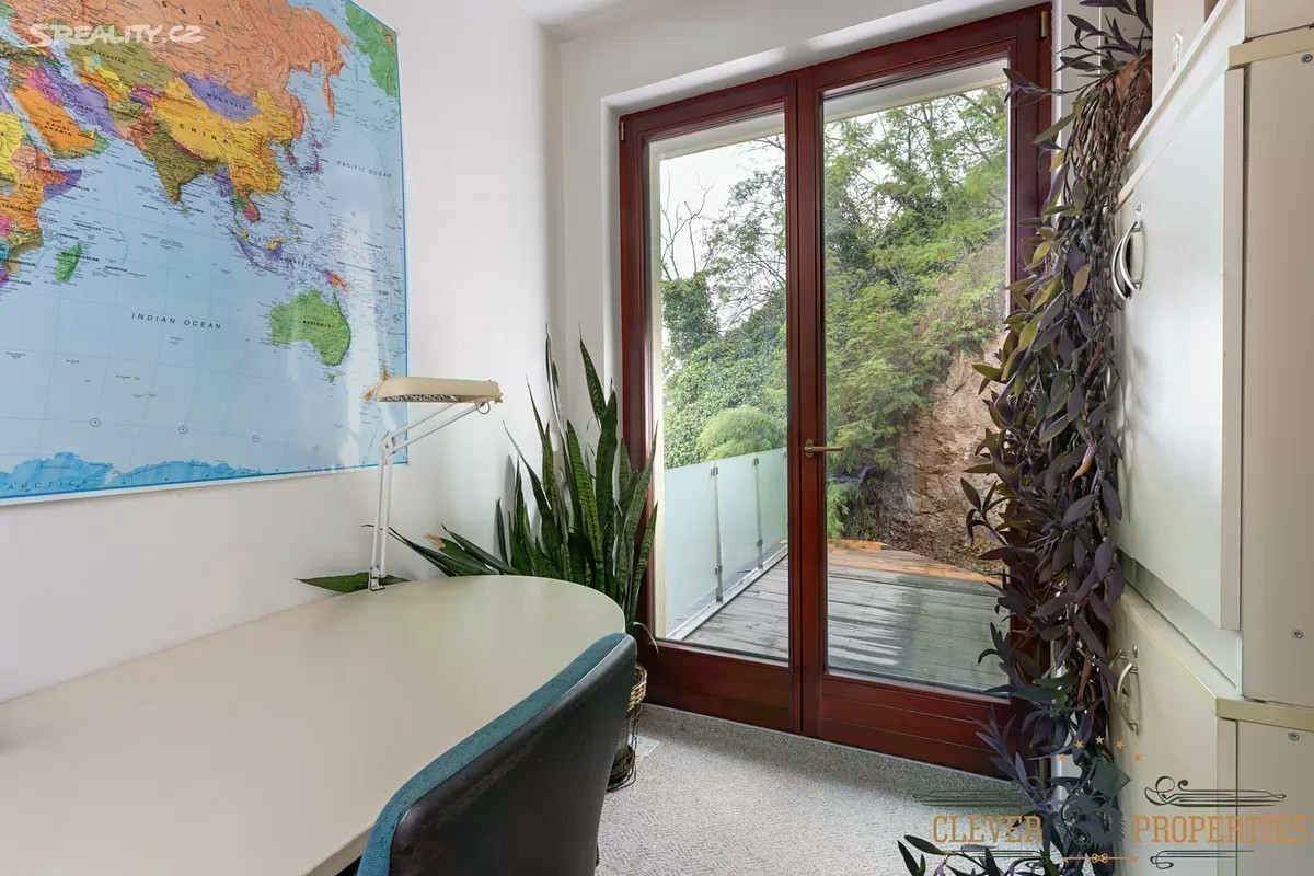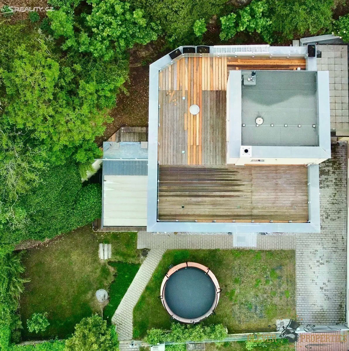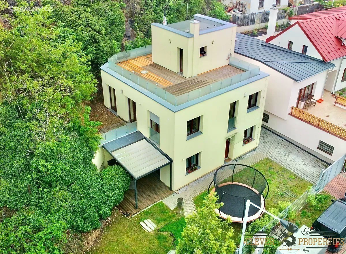 Nabízíme Vám možnost koupě výjimečného rodinného domu v lukrativní lokalitě Pod zámečkem v Praze - Dolní Chabry. Moderní rodinný dům z r. 2017 který nabízí svým prostorem ideální rodinné bydlení a to ve velmi poptávané lokalitě Praha - Dolní Chabry. Netradiční řešení stavby nabízí nejen garáž a další dvě parkovací stání na pozemku, ale i útulnou zahradu přímo navazující na zastřešenou terasu přístupnou z obývacího pokoje. Díky tomu, že dům je částečně zapuštěn do skály, což přidává na jeho kráse a propojení s přírodou, se můžete těšit ze soukromí na terase přístupné z pracovny a ložnice v 1. patře. Další větší terasu najdete nad garáží na opačné straně domu. Pokud Vám to stále nestačí, nabídne dům velkou terasu a to na střeše domu. Z jedné strany s výhledem na ulici a okolí a z druhé pak na samotnou skálu. Tahle terasa je vynikající pro letní grilování, vířivku a podobné aktivity, jelikož navazuje na 2. patro domu, kde se nachází místnost s přípravou pro kuchyň či případné zázemí k této střešní terase. A nyní k dispozici a praktické části domu. V přízemí se nachází vstupní chodba s malým pokojem pro hosty, dále prostorný obývací pokoj, s velkým francouzským oknem. Obývací pokoj plynule přechází do kuchyně, která je plně vybavena vestavěnými spotřebiči a ostrůvkem. Tomu se dostává dostatek denního světla díky světlovodu ze střechy domu. Dále je zde prostorná koupelna se sprchovým koutem a dostatkem místa pro pračku a sušičku. V přízemí je samostatné WC. Pro uložení věcí poslouží komora pod schody. V 1. patře se nachází dva samostatné dětské pokoje, ložnice, opět prostorná koupelna s vanou, sprchovým koutem a samostatné WC. O dvou terasách jsem již psal výše. Do 2. patra se pak po schodech dostanete do obslužné místnosti s již zmíněnou krásnou střešní terasou. Tento elegantní cihlový dům s několika terasami a garáží se nachází na pozemku o rozloze 359 m² a je o celkové užitné ploše 260m2 (z toho 99m2 terasy). Jeho stav je velmi dobrý a energeticky úsporný, což zaručuje komfortní bydlení. Při stavbě byl kladen velký důraz na konstrukční řešení a použití kvalitních materiálů. Vytápění je zajištěno pomocí plynového kotle a je doplněno o krbové kamna, které zajistí nejen atmosféru, ale i pravé teplo domova. Jelikož majitele často dům na delší dobu opouštějí je celá nemovitost vybavena bezpečnostními roletami, které chrání dům před vniknutím cizí osoby a je napojen na centrální pult ochrany. Městská část Dolní Chabry jsou ideální lokalitou pro rodinu. Najdete zde klid a pohodlí, ale zároveň veškerou občanskou vybavenost. (moderní základní škola, mateřské školky, historický objekt radnice s divadlem, obchody a služby v docházkové vzdálenosti, fotbalové a tenisové hřiště, golfové hřiště je ve výstavbě. Samozřejmostí je dobrá dostupnost na stanici metra a to Kobylisy. Pokud Vás nemovitost zaujala, neváhejte mě kontaktovat. Případné financování kupní ceny Vám zprostředkují naší finanční poradci.