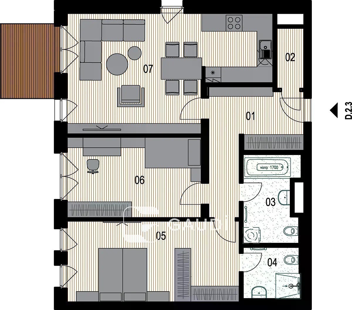 HARMONIA: Unikátní bydlení, první rok bez záloh! Přestěhujte se do svého nového domova v projektu HARMONIA a neřešte starosti s platbami. První rok za vás uhradíme veškeré náklady na provoz bytu i areálu. Žijte v klidu a užívejte si bydlení, aniž byste museli řešit měsíční zálohy. Projekt HARMONIA se nachází v klidné části Prahy 9 - Hrdlořezích. Jedná se o uzavřený rezidenční areál s vlastním soukromým lesoparkem, kde najdete klid a soukromí. Detail bytu: Nabízíme vám krásně prosvětlený byt orientovaný na západ do soukromého nádvoří. Dispozice bytu nabízí dostatek úložného prostoru, dvě koupelny a balkon. Jde o ideální místo pro vytvoření vysněného domova. Celý byt i projekt jsou provedeny ve vysokém standardu. Mezi špičkové vybavení patří: Podlahové vytápění a rekuperace Systém chytré domácnosti Loxone Dřevěné podlahy a lakované interiérové dveře s výškou 210 cm Bezpečnostní vstupní dveře třídy 3 V ceně bytu je již zahrnuto parkovací stání a sklepní kóje. Nechybí ani příprava na venkovní žaluzie a klimatizaci. Služby pro váš komfort: V rámci projektu HARMONIA máte k dispozici řadu nadstandardních služeb: Dětský klub přímo v areálu Ordinace pro rehabilitace a masáže Sauna a posilovna (vnitřní i venkovní) Nabízíme možnost financování formou osobního nebo družstevního vlastnictví. Žijte lépe, žijte v HARMONII. Pro více informací a výběr z dalších dostupných bytů navštivte webové stránky projektu. Disclaimer: Vizualizace interiéru slouží pouze pro lepší představu o možném vzhledu bytu. Nabízená jednotka není vybavená a je nyní ve výstavbě s plánovanou kolaudací na konec roku 2025.