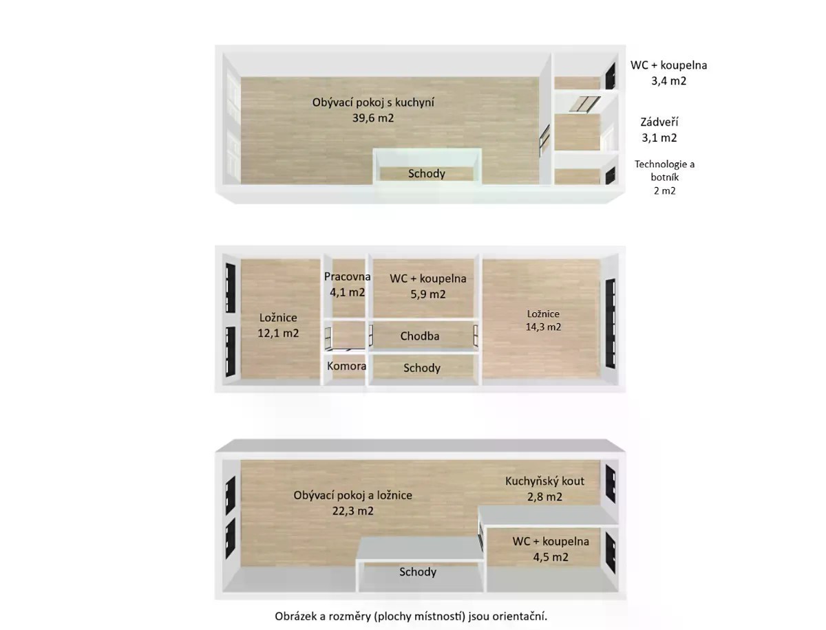Exkluzivně nabízíme k prodeji krajní řadový rodinný dům s předzahrádkou a udržovanou zahradou v žádané části pražských Strašnic, na Solidaritě. Tato čtvrť má své jedinečné kouzlo a je vyhledávána pro svůj klid, množství zeleně, výbornou dostupnost do centra města a zároveň skvělou občanskou vybavenost - v okolí naleznete školy, školky, obchody, kavárny, kulturní zařízení i lékařské ordinace. Dopravní spojení do centra Prahy je velmi rychlé - tramvajová zastávka Solidarita je vzdálená zhruba dvě minuty chůze, stanice metra Strašnická osm minut (dojezd do centra trvá cca 15 min). Dům je v osobním vlastnictví a má přibližně 120 m² celkové užitné plochy rozdělené do tří podlaží. Plocha předzahrádky je 33m2, zastavěná plocha domu 58 m2 a určená plocha k soukromému užívání zahrady za domem je orientačně 60 m2. Díky tomu, že se jedná o krajní dům, který má navíc v přízemí a v 1. patře další dvě okna, je interiér hezky prosvětlený. Dům je možné obejít přes zahradu přímo na terasu. Vstup do domu i na zahradu je bezbariérový. V přízemí je vstupní chodba s technickým zázemím a botníkem, koupelna s toaletou a sprchovým koutem a prostorný obývací pokoj s krbovými kamny a kuchyňským koutem, odkud se vychází na zahradu s terasou. V prvním patře se nachází dvě ložnice, pracovna, komora a další koupelna s vanou a dvojitým umyvadlem. V podkroví se pak nachází samostatná garsonka s kuchyňským koutem a koupelna s WC. Dům prošel rozsáhlou rekonstrukcí v roce 2010. Byla vyměněna okna za plastová, provedeno zateplení fasády, instalován kamerový systém CCTV, kompletně vyměněny nosné prvky, schodiště i instalovány solární kolektory na ohřev vody. Vytápění domu je řešeno vlastním plynovým kotlem, ohřev vody zajišťuje elektrický bojler a solární kolektory umístěné na střeše. V létě ohřívá vodu jen slunce a bojler je vypnut. Jde o energeticky úsporný dům s velmi nízkými náklady na bydlení. Interiér tvoří dřevěné podlahy a stropy (mimo koupelen), příčky jsou sádrokartonové a prostor je maximálně využit vestavěnými skříněmi a úložnými prostory, včetně úložného prostoru v podlaze přízemí. Zahrada je pečlivě udržovaná a kombinuje okrasnou i užitkovou zeleň, včetně bylinek. Na terase, navazující na obývací pokoj, je možné grilovat a relaxovat. Na zahradě se nachází vzrostlé keře, stromy i zahradní domek na nářadí či další potřeby. Neváhejte nás kontaktovat a domluvte si osobní prohlídku tohoto výjimečného domu v jedné z nejžádanějších lokalit Praze.