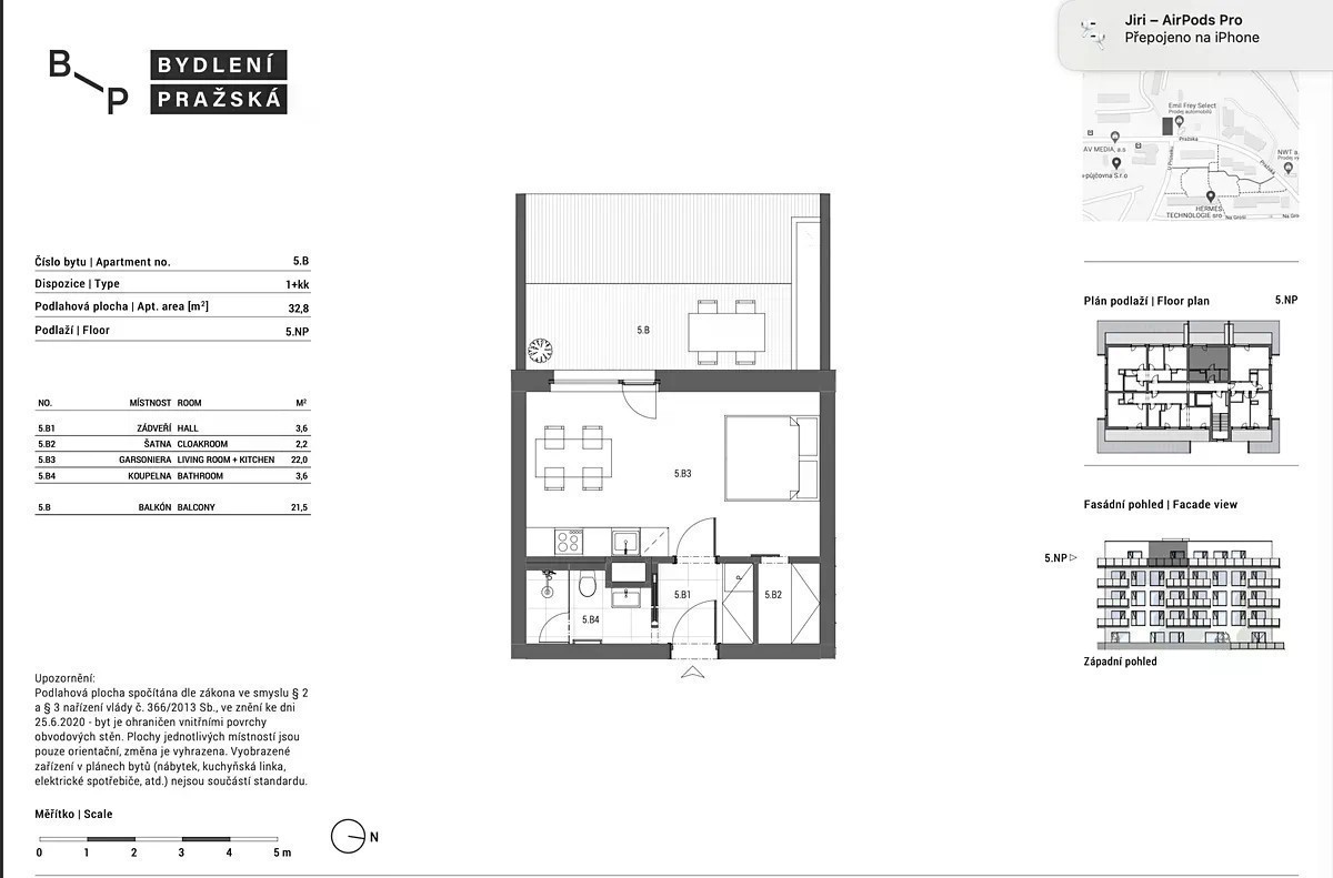 Na pomezí Strašnic a Hostivaře, v jihovýchodní části Prahy vzniká nová obytná čtvrť s nadstandardními benefity pro život. Výstavba bytového domu s celkovým počtem 27 středně metrážních bytů 1+kk, 2+kk a 3+kk poskytne pohodlné bydlení s prostornou terasou a garážovým stáním. Lokalita poskytuje klid a bezpočet možností aktivně tráveného času. Vždyť se také projekt nachází v těsné blízkosti chráněné krajinné oblasti Triangl či nedaleké Hostivařské přehrady. Byty jsou vybaveny v nadstandardním provedení. Samozřejmostí jsou dřevěné podlahy s dubovým povrchem, značkové zařizovací předměty v koupelnách, luxusní keramické obklady a dlažby, klimatizaci a venkovní žaluzie. Dispozice bytové jednotky s označením 5B. Byt se nachází ve 5.NP s výtahem. Byt o dispozici 1+kk s plochou 32,8 m2 a balkonem o velikosti 21,5 m2. Byt je umístěn na Z. Disp.: zádveří 3,6 m2, šatna 2,2 m2, kuchyň a obývací pokoj 22,0 m2, koupelna 3,6 m2, balkon 21,5 m2. Garážové parkovací stání 500.000,Kč vč. DPH. Sklepní kóje 220.000,Kč vč. DPH. Lokalita: Hostivař je oblíbenou městskou částí, kde se mění stará historie v moderní zdravý životní styl. Slibuje pohodlné bydlení a aktivní odpočinek s dobrou vybaveností, potenciálem dalšího rozvoje a výbornou dostupností. Tu zajištuje nedaleké metro Skalka, autobusové či tramvajové linky a Nádraží Hostivař. Lokalita nabídne klid a bezpočet možností aktivního trávení času. Projekt se nachází nedaleko Hostivařského lesoparku s přehradou či chráněné krajinné oblasti Triangl. Okolí je lemované spoustou cyklotras, na své si přijdou milovníci golfu, volejbalu, tenisu či fitness klubů. Aktivní odpočinek naleznete i v nedalekém sportovním klubu Hamr u Hamerského rybníka v Záběhlicích. Nechybí občerstvení, kavárny či stylové restaurace, OC Park Hostivař 375 m. Předpokládaná kolaudace koncem roku 2025.