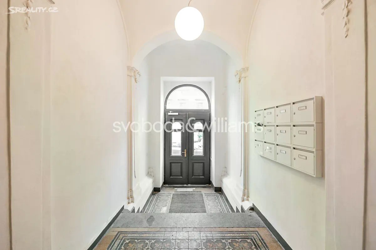 Nárožní byt se zimní zahradou ve 3. patře zrekonstruovaného činžovního domu s výtahem a zachovanými původními architektonickými prvky. Byt se nachází v klidné ulici v Praze 8 Karlíně, v oblasti s plnou občanskou vybaveností a snadnou dostupností do centra, pár minut od zastávky tramvaje a stanice metra Křižíkova. Dispoziční uspořádání bytu tvoří rohový obývací pokoj se zimní zahradou orientovanou na západ, kuchyň s jídelním prostorem, ložnice, koupelna se sprchovým koutem, toaleta a vstupní chodba. Dřevěná špaletová okna a vysoké zdobené stropy odrážejí historický charakter bytové jednotky. Podlahy jsou laminátové v kombinaci s dlažbou v koupelně. Kuchyňská linka je vybavena vestavěnými spotřebiči. Vytápění zajišťují elektrické přímotopy. Populární pražská čtvrť Karlín je známá svou živou atmosférou, moderními kavárnami, restauracemi a bistry a skvělou dopravní dostupností. Zároveň nabízí klidná místa k odpočinku, ať už na stezce podél Vltavy nebo v rozlehlém parku Vítkov. Nedalekým Žižkovským tunelem lze pěšky dojít do Parukářky, kde se v sezóně konají akce a koncerty. Podlahová plocha 72,8 m2.