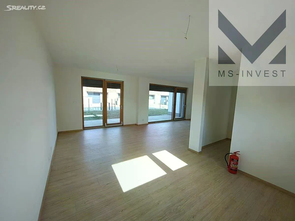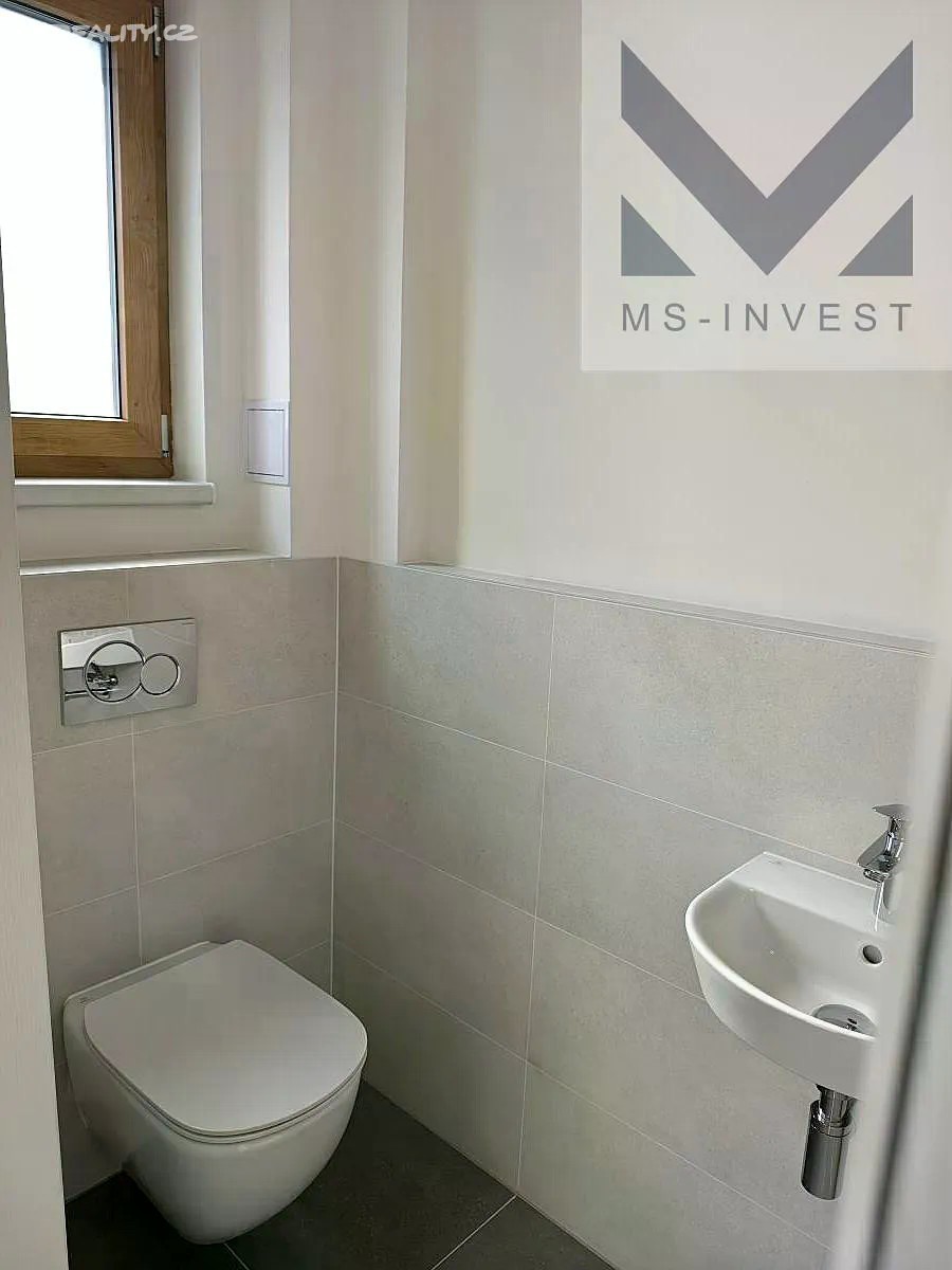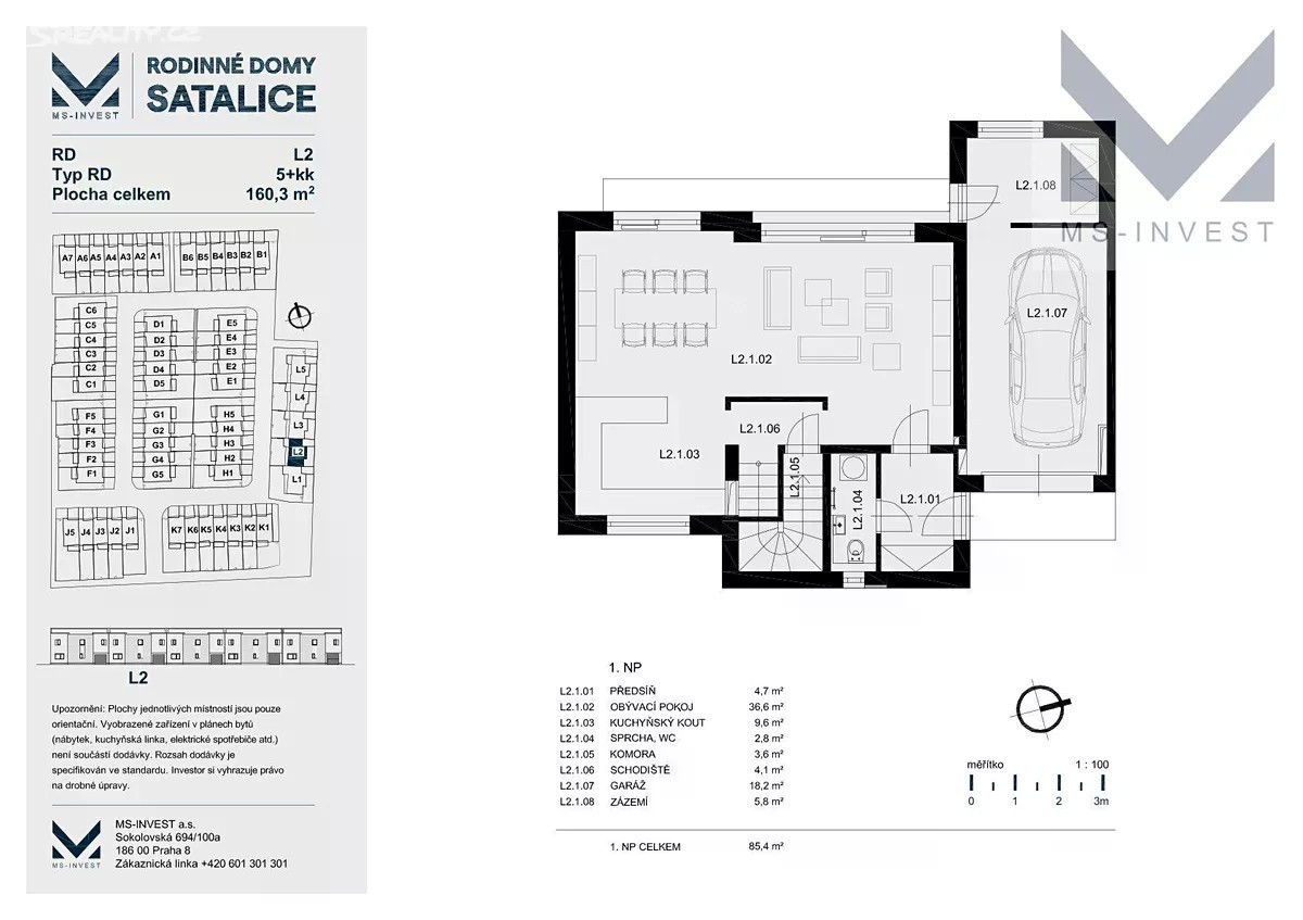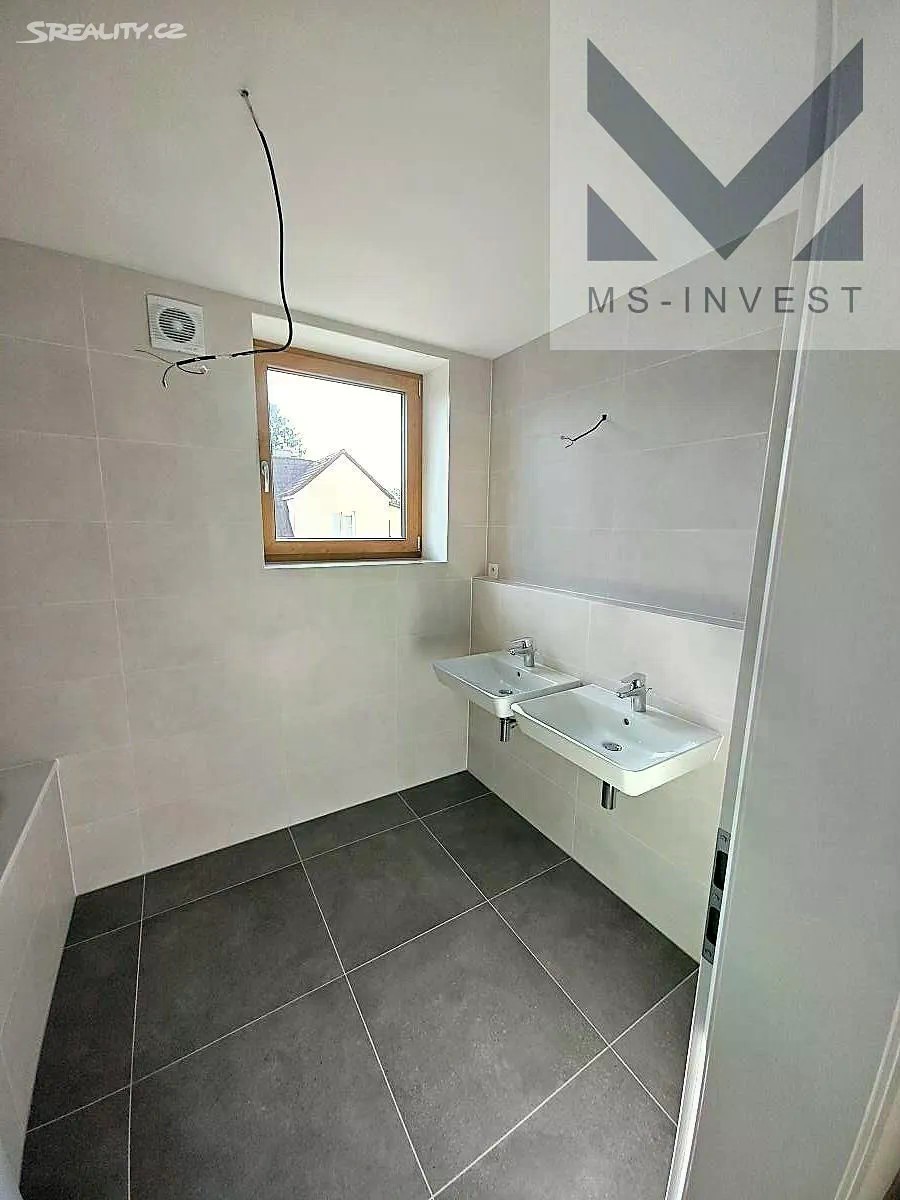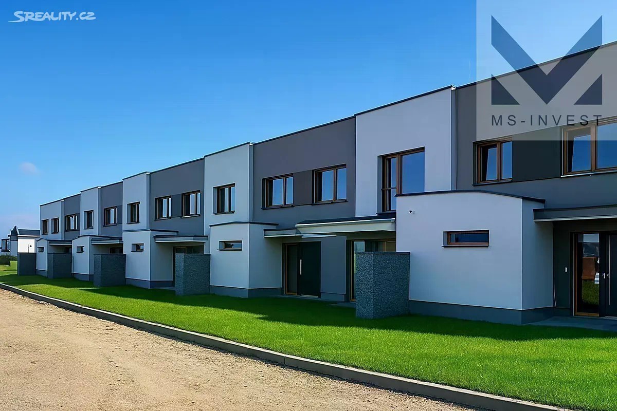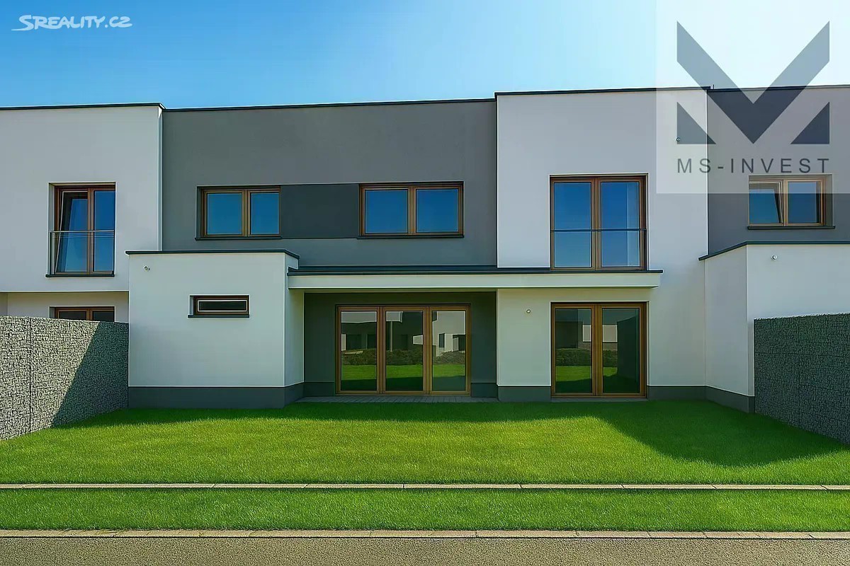 Nabízený největší dům v projektu L-3 velikosti 5+kk a celkové podlahové ploše 160 m2 s příjezdem z ulice Za Školkou, disponuje v 1. NP vlastní garáží, zázemím (skladem) za garáží se vstupem na zahradu, dále předsíní, komorou, sprchovým koutem s toaletou, velmi prostorným obývacím pokojem s kuchyňským koutem o ploše 46 m2 a navazující terasou propojující dům se zahradou. Ve 2. NP se nachází hlavní ložnice o ploše 17 m2, včetně samostatné koupelny se sprchovým koutem a WC, se vstupem z ložnice, dále další menší tři pokoje o velikostech okolo 11 m2, koupelna s vanou a dvěma umyvadly a další samostatné WC spojené s technickou místností. Pozemek má potom velikost 251 m2. Tento dům je jako jeden z posledních dostupných domů v projektu vybaven stavební přípravou na osazení chlazení klimatizace ve všech obytných místnostech. Vytápění a ohřev vody je zajištěn plynovým kondezačním kotlem., V ceně domu je mimo jiné fotovoltaika s bateriovým úložištěm a napojením do distribuční soustavy, reteční nádrž na dešťovou voudu s čerpadlem a dálkově ovládané hliníkové předokenní žaluzie na všech oknech. Domy jsou již dokončeny, zkolaudovány a připraveny k nastěhování. Prodej přímo od developera.