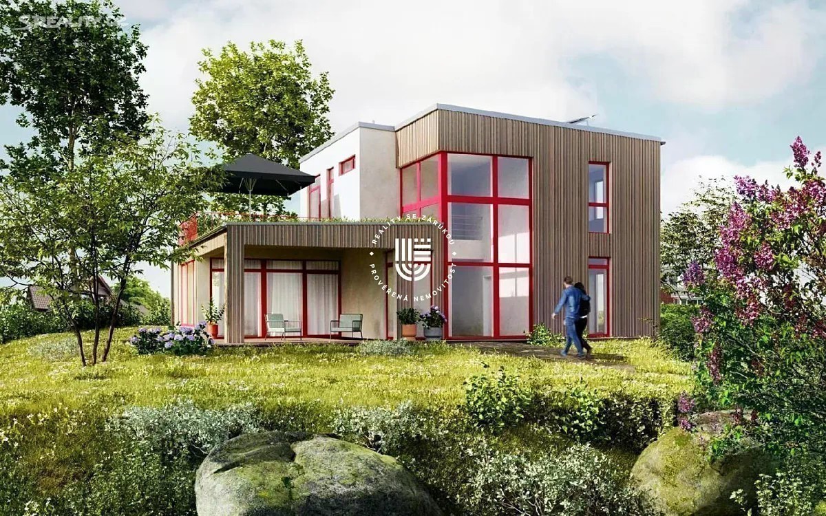 Tento dům je navržen v moderním stylu, kdy každá jeho část je navržená tak, aby zlepšovala funkčnost celého konceptu a zároveň,díky použití dřevěných prvků, ladila s okolní krajinou. Dům má působit moderním skandinávským dojmem. Fasáda je tvořená z dřevěných kosolamel a točené omítky. Na první pohled také zaujmou barevné okenní rámy, které domu dodávají šmrnc. Při vstupu domu se ocitnete v prostorné prosklené vstupní hale, zde je dostatek místa na věšáky, botník, lavičku a vestavné skříně. Ze vstupní haly se můžete dostat dále do domu nebo do vedlejšího pokoje, který je na projektován jako pracovna, vaši hosté tak nemusí procházet celým domem. Dále v domě se pak nachází koupelna se sprchovým koutem, toaletou, bidetem a umyvadlem. Naproti koupelně je technická místnost s prostorem pro pračku a sušičku. Vedle koupelny je zde další pokoj, který lze využít jako pokoj pro hosty nebo skladovací místnost. A poslední části dolního patra je to nejduležitějši v celém domě. Prostorná společenská místnost s jídelnou a kuchyňským koutem. Kuchyňský kout je po celé délce vnitřní stěny a další část pracovní deskou pokračuje hned naproti. Díky velkému prostoru vymezenému právě pro tuto část domu, je zde dostatek místa pro dlouhý jídelní stůl a pohovku s křesly.Obývací část místnosti je zde ze tří světových stran prosklená. To Vám zajistí dostatek denního světla v každém ročním období, aby chvíle strávené s rodinou byly co nejpříjemnější. Z obývacího pokoje je dále vstup na venkovní zastřešenou terasu. V horní patře naleznete druhou koupelnu se sprchovým koutem, toaletou a umyvadlem. Dále je zde hlavní ložnice a prostorem na vestavné skříně a vstupem na horní terasu. Horní terasa je nezastřešená a vede v místě obývacího pokoje a dolní terasy. A nakonec se v tomto patře nachází další dva pokoje, které lze využít jako dětské. Dům je v hodný pro rodiny, které mají rády prostor a moderní styl. Využít nádherné bydlení na okraji Prahy s výhledem na Berounku velmi dobrou dostupností MHD. Pokud vás moje nabídka zaujala tak mě neváhejte kontaktovat. Termín dokončení 2025/2026