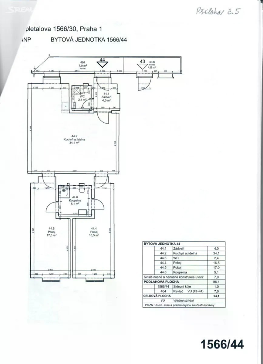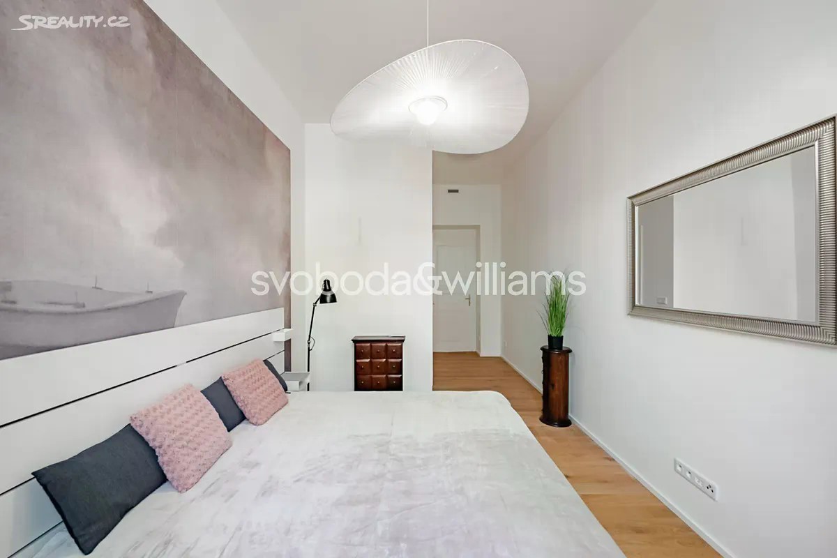 Designově zařízený prostorný byt s vysokými stropy se nachází ve 3. podlaží kvalitně zrenovovaného historického domu s moderním výtahem. Elegantní novorenesanční budova stojí v samém srdci metropole, blízko Václavského náměstí a Vrchlického sadů, které prochází rozsáhlou revitalizací. Plochu bytu tvoří obývací pokoj s kuchyňským a jídelním koutem, 2 ložnice (jedna s vestavěným patrem na spaní), koupelna (s walk-in sprchovým koutem a WC), samostatná toaleta a zádveří. Vstup do bytu je přes pavlač (7 m2), která je výlučném užívání tohoto a sousedního bytu. Nadčasový interiér navrhlo architektonické studio. Ke kvalitnímu vybavení patří dřevěné podlahy, odhlučněná okna, centrální topení či rekuperace. Kuchyně je kompletně vybavena, kupní cena zahrnuje veškeré interiérové zařízení. Celý dům prošel v r. 2019 zdařilou rekonstrukcí pod vedením renomovaného studia OOOOX, budova je vybavena výtahem a kamerovým systémem, k bytu přísluší sklep. Okolí je plné restaurací či obchodů, v pěším dosahu jsou divadla, kina, Státní opera i Národní muzeum. V pohodlném dosahu jsou stanice všech linek metra a tramvajové zastávky, po revitalizaci parku u Hlavního nádraží přibude tramvajová zastávka doslova pár kroků od domu. Podlahová plocha 86,1 m2, balkón (pavlač) 3,5 m2, sklep 1,6 m2.