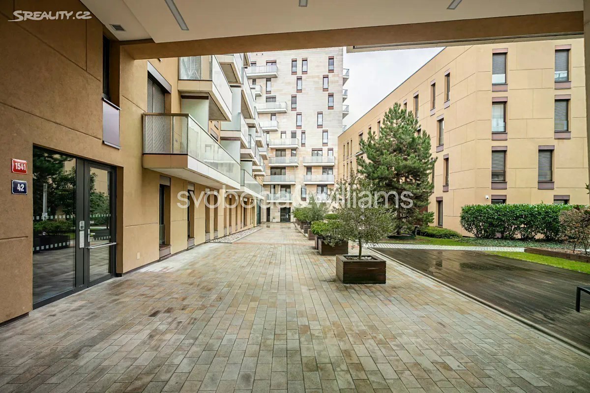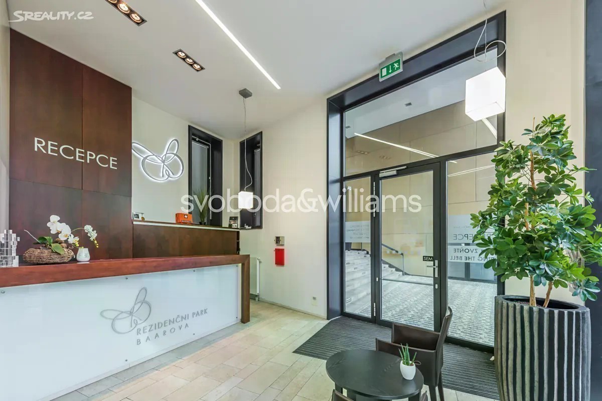 Světlý a prostorný byt se třemi balkóny a jedním garážovým stáním je součástí uzavřeného areálu Rezidenční park Baarova. Moderní obytná čtvrť s parkem se rozkládá v dosahu kompletní občanské vybavenosti i stanice metra. Plocha bytu umístěného ve 3. podlaží se skládá z velkého obývacího pokoje s balkónem, přilehlou kuchyní, dále hlavní ložnice s en-suite koupelnou, druhé ložnice, centrální koupelny, prádelny/komory, samostatné toalety a vstupní chodby. Obě ložnice mají vlastní balkón. Rezidence byla dokončena v r. 2012. Ke standardu patří dřevěné podlahy, francouzská eurookna s venkovními roletami, centrální vytápění. Dům má výtah, recepci s ostrahou a vstupy i vjezdy na čip. K bytu přísluší garážové stání a sklep, rezidenti mohou využívat kočárkárnu, kolárnu a vnitroblok se zahradou, dětským hřištěm a horolezeckou stěnou. Výborná poloha projektu umožňuje bydlet přímo u areálu Brumlovka, v bezprostřední blízkosti kaváren, restaurací, wellness, fitness, supermarketu, drogerie, lékárny, zubní ordinace či atletického hřiště. Stanice metra Budějovická je vzdálena 2 minuty autobusem, nedaleko je i nákupní centrum Arkády Pankrác nebo železniční zastávka Praha-Kačerov. Při cestách autem je výhodou snadný nájezd na magistrálu, Jižní spojku i dálnici D1. Podlahová plocha 116,5 m2, balkóny celkem 8,6 m2, 7 m2 sklep.