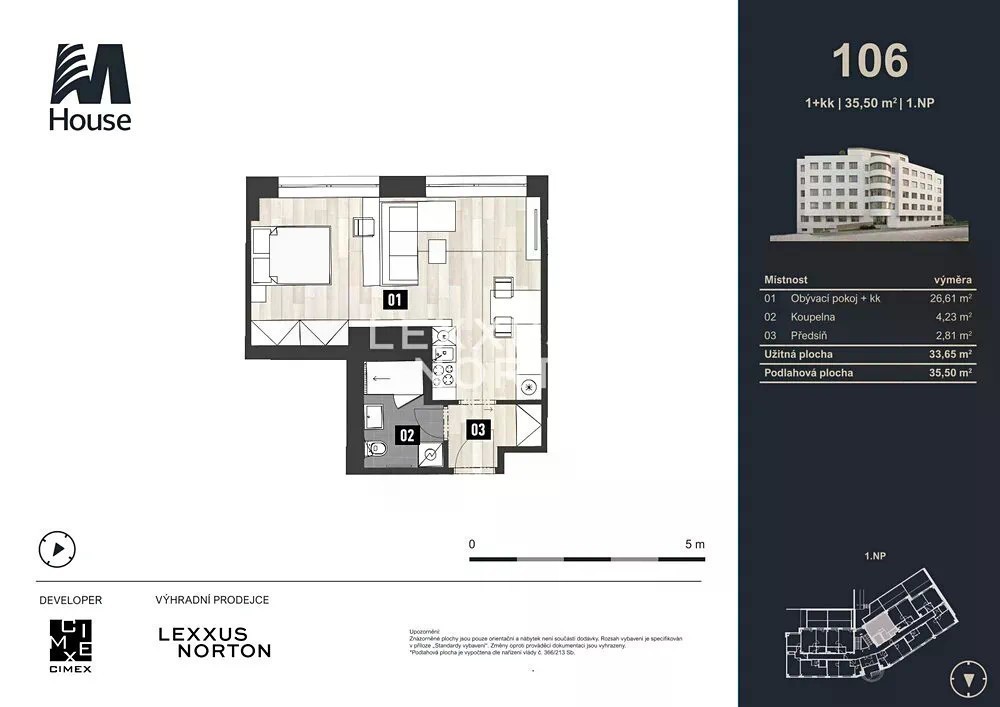 Nabízíme jedinečnou příležitost stát se majitelem ubytovací jednotky 1+kk k prodeji (35,5 m²), situované na 1. nadzemním podlaží rezidenčního projektu M-House v pražských Vršovicích. Projekt je navržen s důrazem kladeným na komfort, praktičnost a funkčnost. Jednotka se vyznačuje praktickým a plnohodnotným využitím každého metru čtverečního. Ze vstupní chodby se plynule přesunete do hlavní obytné části (26,6 m²), která harmonicky spojuje kuchyňský kout, obývací prostor a ložnicovou zónu. Dále pak moderní koupelna s toaletou a sprchovým koutem. Dispozice interiéru je navržena v atraktivním minimalistickém stylu. K jednotce je možné dokoupit parkovací stání a sklepní kóji. Vyhledávaná lokalita v blízkosti Kubánského náměstí, na pomezí Vršovic a Vinohrad, mistrně spojuje klidnou atmosféru s veškerým komfortem městského života. Díky strategické poloze v dosahu klíčových dopravních uzlů a zastávek MHD se snadno a rychle dostanete nejen do centra, ale i do dalších částí Prahy. Okolí je bohaté na obchody, supermarkety, mateřské i základní školy a zdravotnické služby. Gastronomické nadšence potěší nespočet útulných kaváren, výtečných restaurací a stylových bister. V těsné blízkosti se nachází park Ruth Bondyové, ideální pro odpočinek, procházky a pikniky, a také nově vznikající park Drážní promenáda, inspirovaný proslulou newyorskou High Line. Sportovně založení jedinci ocení širokou škálu zařízení, která uspokojí všechny věkové kategorie - od plaveckého bazénu, přes zimní stadion, až po venkovní sportoviště a Fortuna Arenu.