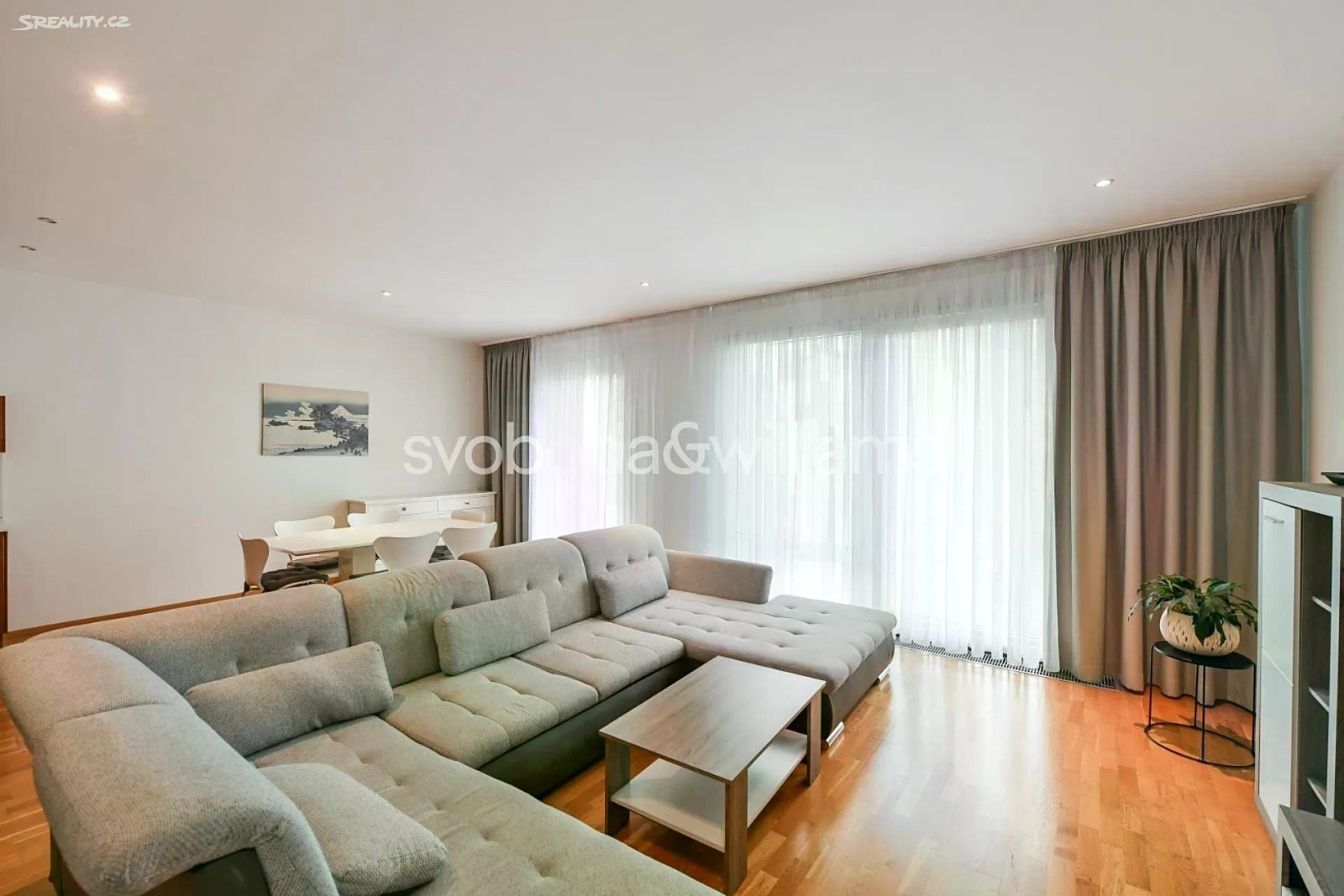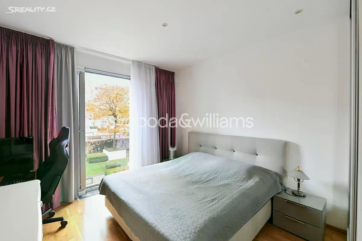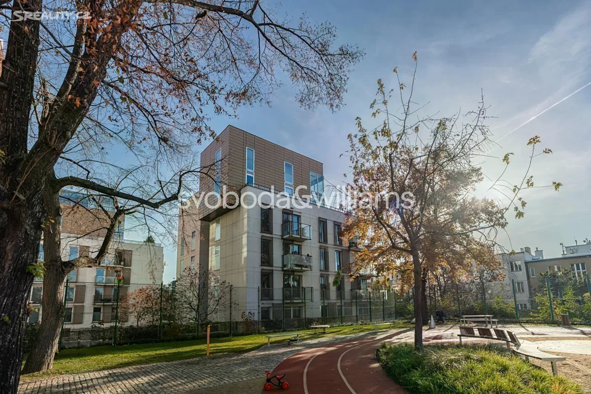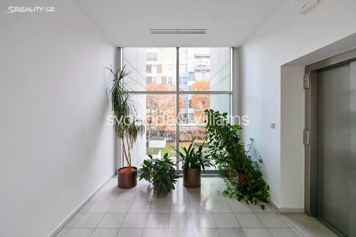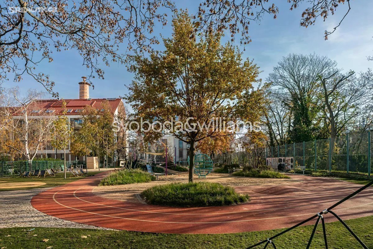 Více než stometrový vzdušný byt se 2 balkóny poskytujícími pěkný výhled do tiché společné zahrady ve vnitrobloku je umístěn ve 2. podlaží uzavřeného rezidenčního komplexu Korunní Dvůr s ostrahou a podzemní garáží, kde jsou k bytu vyhrazena 2 stání. Rezidence se rozkládá na rozhraní Vinohrad, Vršovic a Žižkova, v místě s kompletní občanskou vybaveností a perfektní dopravní obslužností. Plochu bytu tvoří obývací pokoj s navazující kuchyní, 2 ložnice, koupelna (s vanou, WC, umyvadlem a přípojkou na pračku), samostatná toaleta, předsíň a chodba. Obývací pokoj má vstup na prostorný balkón, k jedné ložnici přiléhá druhý, zasklený balkón/zimní zahrada. Z obou balkónů se otevírají pěkné výhledy do upravené zeleně. Bytový dům byl vystavěn v r. 2003. Podlahy bytu jsou dřevěné, spoustu denního světla propouštějí velkoplošná hliníková okna. Do obývacího pokoje vedou z chodby celoskleněné dvoukřídlé dveře. Kuchyně je kompletně vybavena, ložnice mají vestavěné skříně, koupelny zdobí mozaika. Vytápění je podlahovými konvektory. Kupní cena zahrnuje 2 garážová stání a sklep. Celý komplex střeží 24hodinová recepce s ostrahou. Lokalita poskytuje vše potřebné ke spokojenému životu: restaurace, kavárny, obchody, lékařské služby i školy, v pěším dosahu je obchodně-zábavní centrum Flora. Vynikající spojení s centrem zajišťují tramvaje ze zastávky přímo u komplexu, během chvilky je možné dojít i ke stanici metra. Podlahová plocha dle plánu developera 115,33 m2, balkóny 7,89 m2 a 4,13 m2, sklep 3,81 m2.