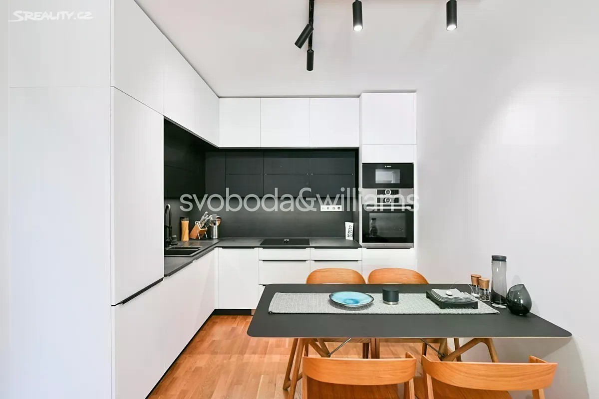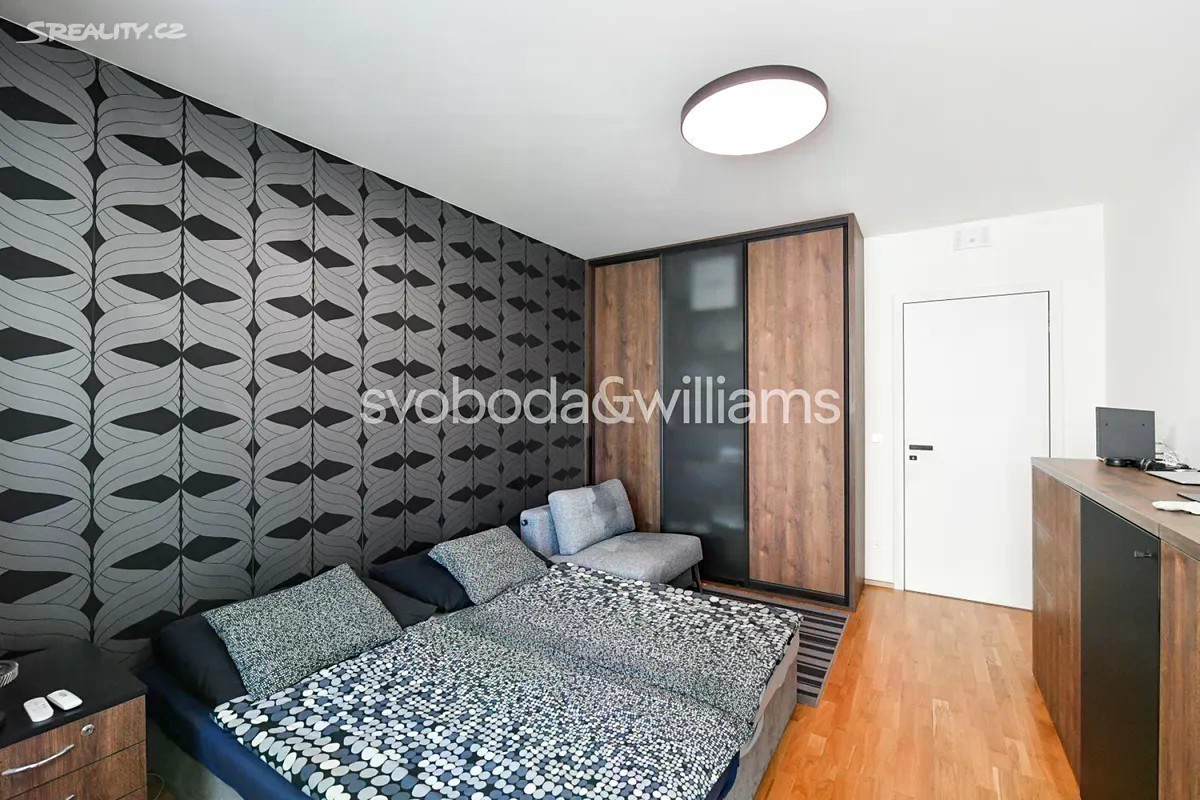 Plně vybavený byt v 7. patře novostavby s výtahem láká příjemným klidem vzkvétající lokality pražských Modřan a pěkným výhledem do okolní zeleně. Rezidenční komplex Zahálka je zasazen v sousedství golfového hřiště a oblíbeného volnočasového areálu s restaurací u břehu Vltavy. Přehlednou dispozici bytu tvoří obývací pokoj s kuchyňským koutem, jídelní částí a vstupem na lodžii, prostorná ložnice s velkoformátovým oknem, kde je nyní umístěn pracovní kout, dále koupelna a chodba. Pokoje jsou orientované na východ. Součástí nemovitosti je také kryté parkovací stání a sklep. Profesionální interiérový design sladil dřevěné prvky s dekory v kombinaci černé, bílé a odstíny šedé a dal vzniknout modernímu harmonickému domovu. Kuchyňská linka je zařízena spotřebiči kvalitní značky Bosch, vysoký standard doplňují francouzská okna, bezfalcové interiérové dveře české značky SAPELI (dveře do obývacího pokoje jsou prosklené s praktickými panty na obě strany) a vestavěný nábytek na míru. Nová rezidenční čtvrť vyniká množstvím zeleně dle návrhu renomovaných krajinářských architektů. V bezprostřední blízkosti se nachází i golfové hřiště, četná dětská hřiště, blízko je k venkovním i vnitřním sportovištím a na cyklostezku spojující centrum metropole se Zbraslaví. V dosahu je autobusová, tramvajová i železniční zastávka, veškerá občanská vybavenost je v krátké dojezdové vzdálenosti. Možnost převzetí hypotečního úvěru s úrokem 2,09% a fixací do 2031. Podlahová plocha 61,5 m2, balkon 3,8 m2, sklep 3,1 m2.