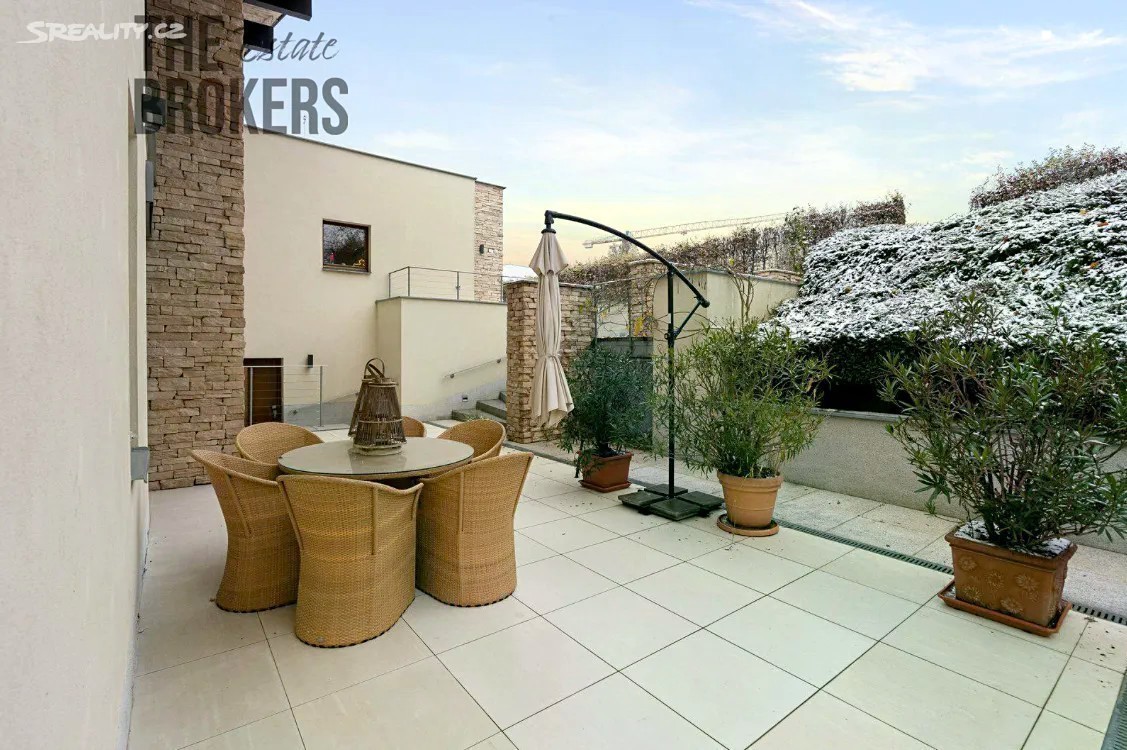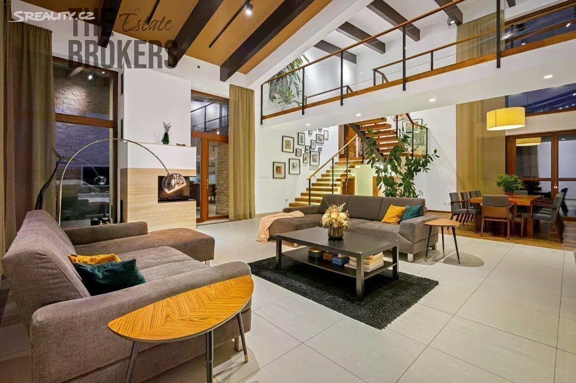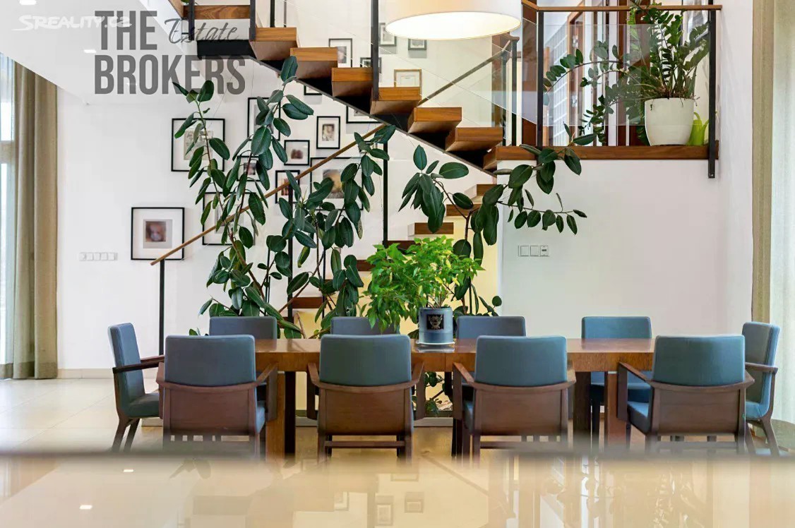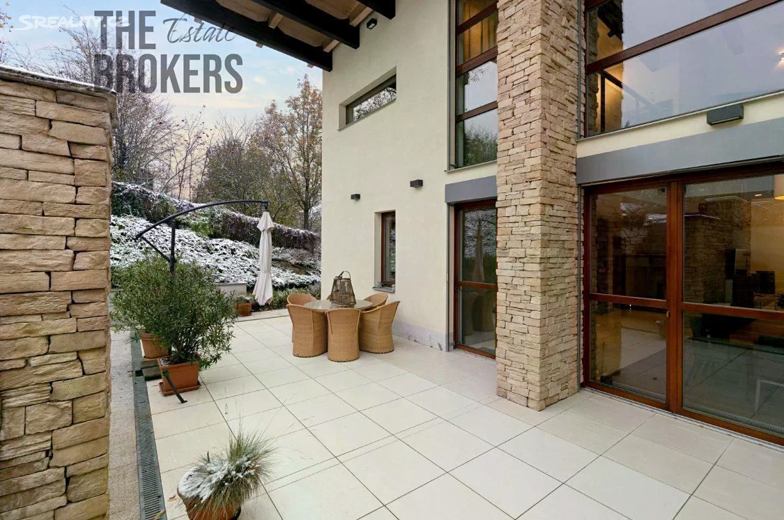 Nestačí vám současná nabídka luxusního bydlení, protože hledáte víc než vkusně zařízený dům? Chcete soukromí a prostor, který zaujme i vaše návštěvy? Pak vítejte ve Velké Chuchli, v soukromém hlídaném komplexu privátních vil. Naši vilu s dvanácti místnostmi obklopuje rozlehlá zahrada s bazénem, terasou a mimořádným výhledem na panorama Prahy. Srdce domu tvoří obývací pokoj s kuchyní a jídelnou. Krásný, otevřený prostor je prosvětlený velkými okny, díky kterým vynikne jeho elegantní design. Překvapí vás, kolik hostů zde můžete uvítat a přitom se cítit pořád "jako doma". Ty nejchutnější pokrmy připravíte v moderní kuchyni s ostrůvkem a barovým pultem. Vychutnávat si je budete u masivního stolu, kam se vejde celá vaše rodina nebo obchodní partneři. Z osmi ložnic se můžete těšit krásnému výhledu. A zaujme vás i vybavení. Například relaxační vana jen pár kroků od postele. Dům má 6 koupelen, dětskou hernu, pracovnu, malý byt se samostatným vchodem nebo fitness a vinný sklípek. K odpočinku využijete venkovní bazén se slanou vodou a vybudovat zde můžete i saunu. Pokud mezi vaše koníčky patří třeba lyžování nebo motocross, všechno vybavení pohodlně uskladníte do garáže, kam se vejde až 8 vozů. Královské bydlení pro rodinu nebo dva byty pro dvě generace - to v sobě skrývá tato krásná vila. Jednoduchým oddělením můžete vytvořit jednotky o velikosti 8kk a 3kk. Bydlení v této vile je luxusní i úsporné, protože technické vybavení odpovídá nejvyšším standardům. Podlahové topení vyhřívá tepelné čerpadlo. Připojit můžete i solární panely. Nechybí vrtaná studna či retenční nádrž na dešťovou vodu. Okolí rezidence je plné kulturních i přírodních památek. Najdete je třeba v Chuchelském háji, nebo v přírodní rezervaci Homolka. A na legendární dostihové závodiště Velká Chuchle to budete mít jen kousek. Okouzlující vila, ve které se snoubí světlo a prostor s krásnými výhledy a útulnými zákoutími. Poznejte ji na vlastní oči. Pro více informací mě kontaktujte.