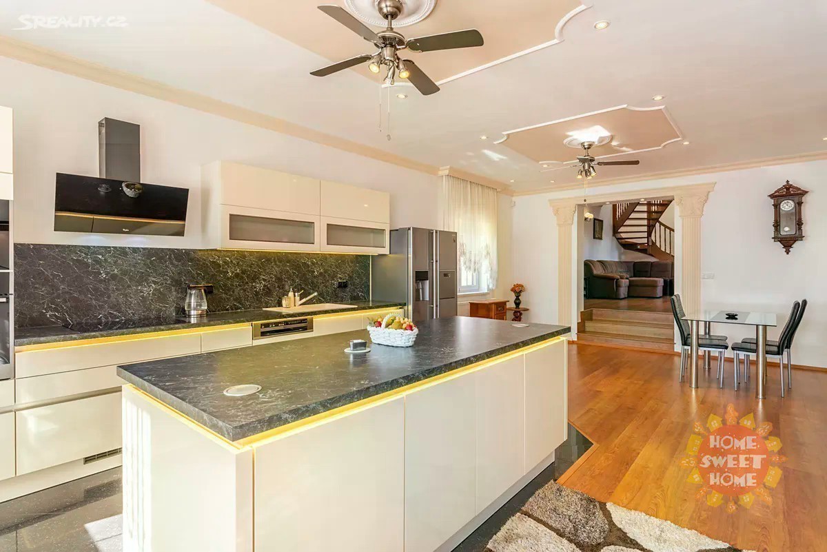 Nabízíme k prodeji pěkný zařízený rodinný dům o dispozici 5+1. Celková výměra domu činí 320 m2 a výměra zahrady činí 290 m2. Rodinný dům se nachází na Praze 6 - Řepy v ulici Gallašova. Dům sestává z moderní kompletně vybavené kuchyně (lednička s mrazničkou, trouba, mikrovlnka, sklokeramická varná deska, myčka) propojené s obývacím pokojem, 3 oddělených ložnic, koupelny s vanou, sprchovým koutem a toaletou, samostatného WC. Na podlahách je plovoucí podlaha a v koupelnách dlažba, která je vyhřívaná. Lze u domu zaparkovat 3 auta - 1 garážové stání, 2 stání ve dvoře. Objekt je střežen kamerami a je zde i zabezpečovací systém. Zahrada je automaticky zavlažována a je zde k dispozici i venkovní krb. Jedná se o velice pěknou a klidnou lokalitu s dobrou občanskou vybaveností. V okolí domu najdeme parky, restaurace, obchody, Japonskou školu. Rychlé spojení do centra Prahy.