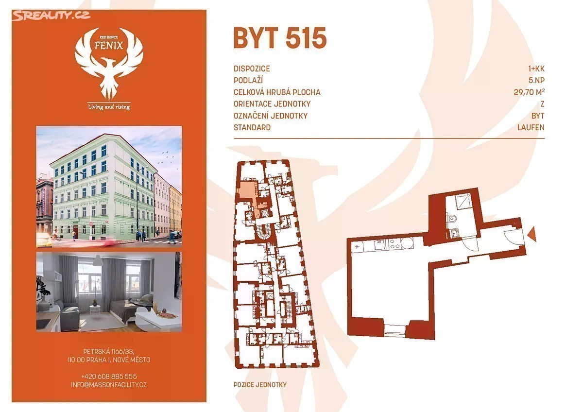 Nabízíme k prodeji byt o dispozici 1+kk v nově zrekonstruovaném domě na adrese Petrská 33 v blízkosti stanice metra Florenc. • přímo od developera • celý dům prošel kompletní rekonstrukcí (nová střecha, rozvody, okna a fasáda) • byt o rozloze 38,1 m² se nachází v 6. nadzemním podlaží • orientovaný na západ (7) • byt je vybavený nábytkem Lokalita: Byt se nachází v atraktivní lokalitě Florenc, která je známá svou výbornou dopravní dostupností a bohatou nabídkou služeb. V blízkosti najdete obchodní centra, restaurace, kavárny a další občanskou vybavenost. Lokalita je ideální pro všechny, kteří chtějí mít vše potřebné na dosah ruky. Dopravní dostupnost: V blízkosti se nachází stanice metra Florenc (linka B a C), která je vzdálena jen několik minut chůze, což zajišťuje snadný a rychlý přístup do dalších částí města. Nechybí ani zastávky MHD nebo autobusové nádraží, které poskytuje další možnosti pro pohodlné cestování. Upozorňujeme, že fotografie v inzerátu jsou ilustrační a nemusí pocházet z konkrétního bytu. Pokud máte zájem o prohlídku nebo další informace, neváhejte nás kontaktovat. Těšíme se na Vaši návštěvu!