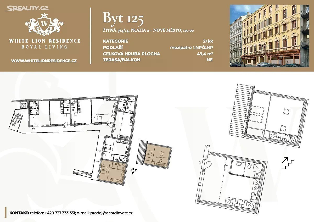 Nabízíme k prodeji byt o dispozici 2+kk v historickém domě po kompletní rekonstrukci na adrese Žitná 14. • přímo od developera • celý dům prošel kompletní rekonstrukcí (nová střecha, rozvody, okna a fasáda) • mezonetový byt 2+kk o rozloze 49,4 m² se nachází v 2. nadzemním podlaží přístavby ve vnitrobloku domu Unikátní nemovitost v samotném centru Prahy - White Lion Residence, dříve známou jako dům „U Bílého lva“, na prestižní adrese Žitná 14. Tento historický měšťanský dům je nejen architektonickým skvostem, ale i místem s mimořádnou kulturní hodnotou - v minulosti zde žil slavný hudební skladatel Antonín Dvořák. Lokalita nabízí ideální kombinaci klidného městského bydlení a pulzujícího života centra. V těsné blízkosti se nachází Václavské náměstí, Národní muzeum, restaurace, kavárny, kulturní instituce i stanice metra a tramvají. White Lion Residence představuje ideální investiční příležitost i stylové bydlení s historickou atmosférou.