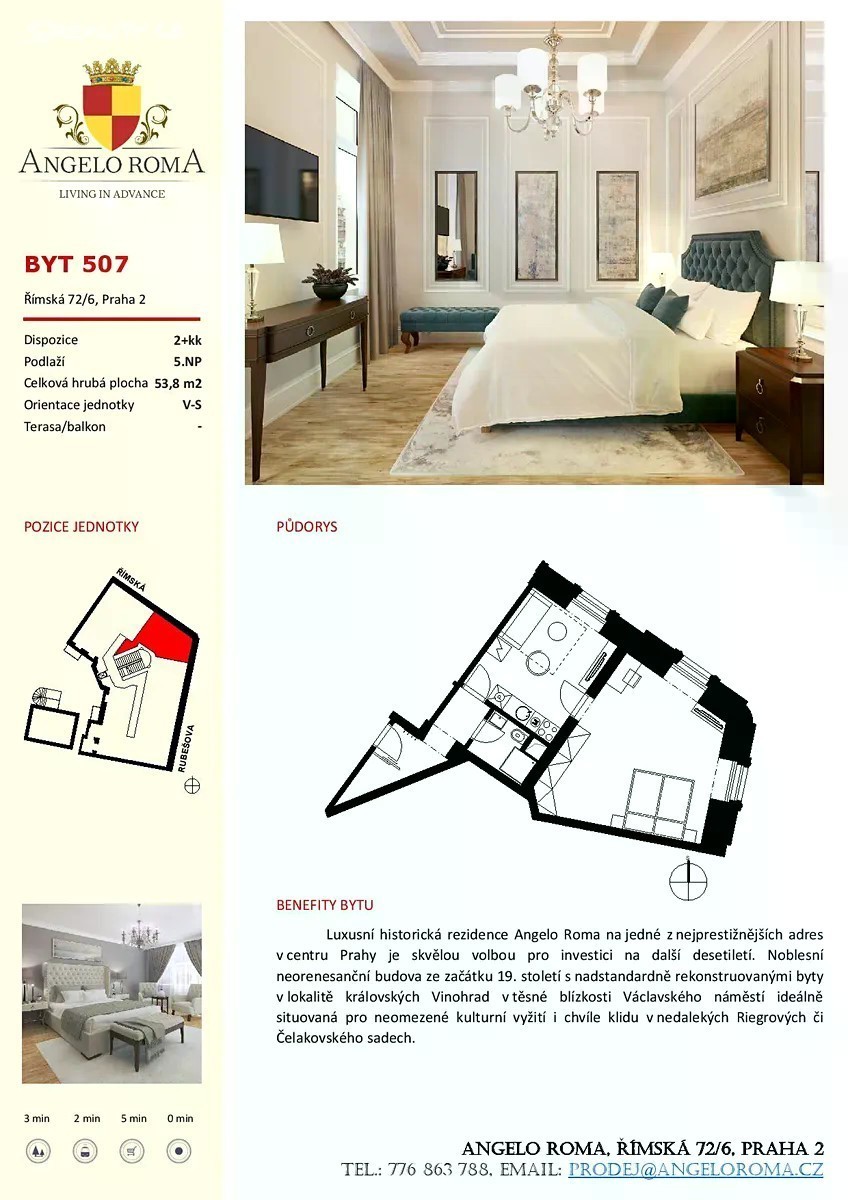 Prodej bytu 2+kk 54 m² Rubešova, Praha - Vinohrady