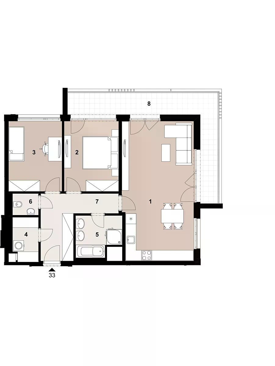Nabízíme k prodeji byt 184-07-033 s dispozicí 3+kk (80,7 m2), balkonem (19,2 m2), přiřazeným sklepem a garážovým stáním v novém projektu Viladomy Střížkov. Viladomy Střížkov jsou komorní rezidenční projekt navazující na nezastavitelnou zeleň v klidné části Prahy 8, jen kousek od stanic metra C - Ládví a Střížkov. Jde o pokračující etapu velmi oblíbeného a úspěšného projektu Viladomy Roudnická. Kromě nových moderních bytů a bohaté zeleně zde vznikne i prostor pro kavárnu, obchod nebo provozovnu služeb. V okolí se nachází široká občanská vybavenost, včetně školek a škol, obchodů a služeb. Lokalita nabízí příjemné prostředí pro relaxaci i rodinné aktivity a široké možnosti sportovního vyžití. Parkovací stání a sklepy nejsou zahrnuty v ceně z důvodu snadnějšího a přehlednějšího porovnání napříč nabídkou na trhu nového bydlení.