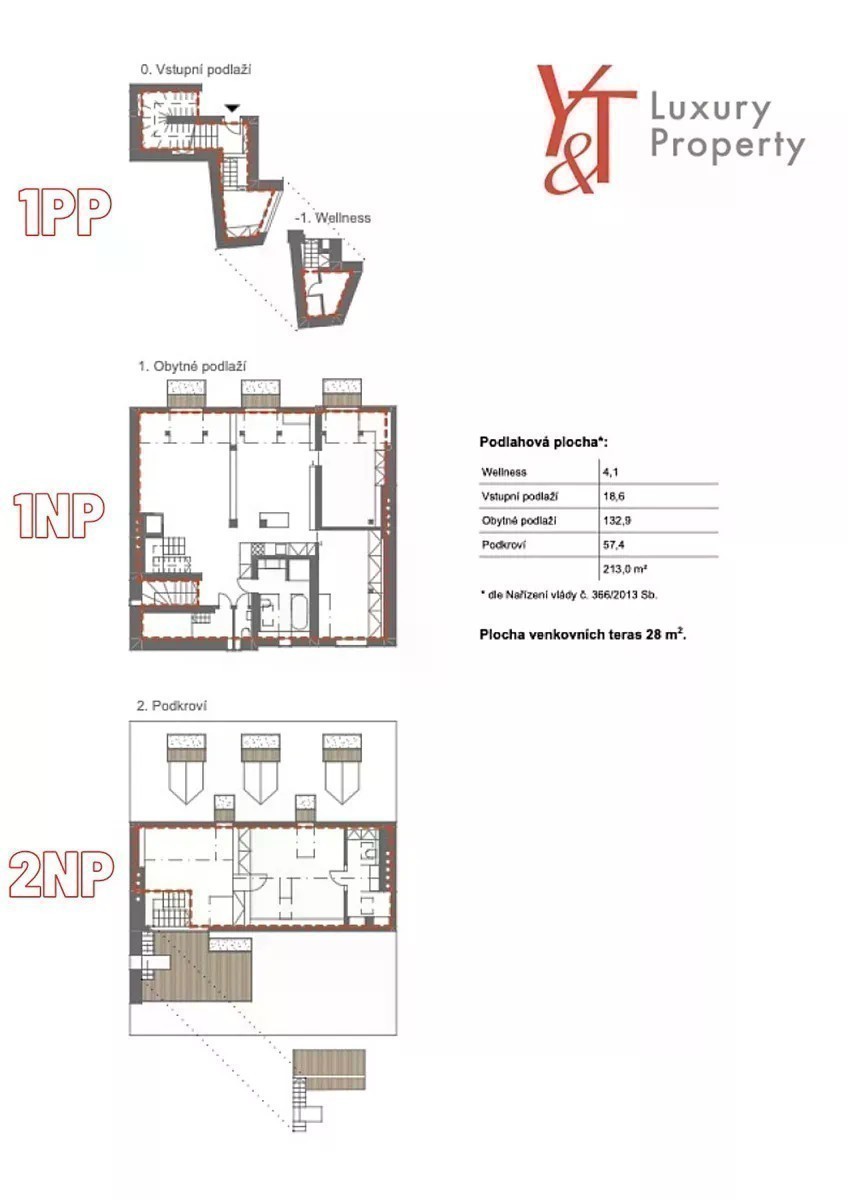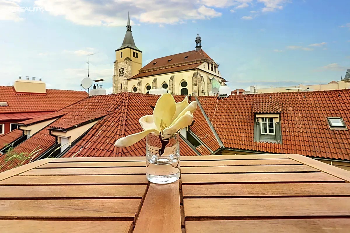 Nabízíme k prodeji jedinečný luxusní byt 5+kk o rozloze 213 m² s balkony a prostornou terasou, situovaný v srdci Starého Města. Tento exkluzivní byt se nachází v historickém domě s pouhými čtyřmi jednotkami, což zajišťuje maximální soukromí a klid, přesto jen minutu chůze od metra Můstek a Národní třídy. Byt se pyšní panoramatickým 360° výhledem na celou Prahu a prošel kompletní renovací před šesti lety. Po vstupu do bytu vás přivítá předsíň, ze které se po několika schodech dostanete do soukromého wellness se saunou. Hlavní obytný prostor tvoří prostorný obývací pokoj s mramorem obloženým krbem a plně vybavenou kuchyní značky Miele, kde stěny zdobí elegantní benátský štuk. Snídaně si můžete vychutnat na jednom ze dvou balkonů s působivým výhledem na historické památky Starého Města. V tomto podlaží jsou k dispozici dvě ložnice, z nichž jedna má vlastní balkon, technická místnost, koupelna s vanou a samostatná toaleta. Horní patro nabízí další dvě ložnice, koupelnu a dva balkony. Z jedné z ložnic vede velkoformátové okno na soukromou terasu s posezením. Byt je vybaven špičkovým ozvučením, masážní vanou, filmovým plátnem s projektorem a dalšími nadstandardními prvky. Klimatizace a automatická závlaha na terasách přispívají k maximálnímu komfortu. K bytu náleží dva sklepy. Nemovitost vyhrála architektonickou cenu roku. Lokalita nabízí jedinečnou atmosféru historické Prahy, s Betlémským náměstím, Karlovým mostem i Staroměstským náměstím v docházkové vzdálenosti. Tato výjimečná nemovitost představuje dokonalou kombinaci nadčasového luxusu a výhod prestižní lokality. Energetická třída G je uvedena dočasně, vzhledem k novele zákona č. 406/2000 Sb. O hospodaření s energií. Po dodání energetického štítku bude uvedena skutečná energetická třída této nemovitosti. *Nábytek na fotografiích nemusí odpovídat skutečnému stavu. Pro prezentaci byl použit home staging.
