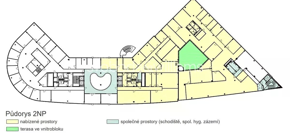 Kancelářské prostory k pronájmu s terasou v 1. patře moderní administrativní budovy z dílny architektonického studia Bílek Associates. Stupňovité terasy a přilehlý park zajišťují příjemné pracovní prostředí. Stavba má výborné tepelné a akustické vlastnosti i dostatek denního světla. Variabilita prostoru umožňuje nájemcům zvolit kanceláře s otevřenou či uzavřenou dispozicí. Výrazným rysem stavby je vlnitá fasáda, každé patro má navíc přístup na privátní terasu. Lokalita: Veškerá infrastruktura MHD je v docházkové vzdálenosti okolo 4 minut - stanice metra Českomoravská, tramvajové zastávky Balabenka, Ocelářská a Divadlo Gong, stejně jako vlakové nádraží Praha-Libeň. V bezprostředním okolí se nachází kompletní občanská vybavenost, včetně obchodních center Galerie Fénix a Galerie Harfa. Vybavení a služby: Ostraha budovy zajištěna 24/7 Možnost instalace vlastního docházkového systému v pronajatých prostorách Kantýna v objektu Kuřárny, zahrada Solární elektrárna na střeše budovy Bankomat Kolárna a sdílená sprcha pro sportovce 24hod. přístup Zdvojené podlahy Certifikát Breeam - Very good Přístup do prostor jak hlavním vchodem budovy, tak i samostatným zadním schodištěm Terasa Fotografie slouží jen pro ilustraci a nemusí přesně odpovídat současnému vzhledu prostor. Nájemné a poplatky jsou uvedeny bez DPH. Nájemce neplatí provizi.