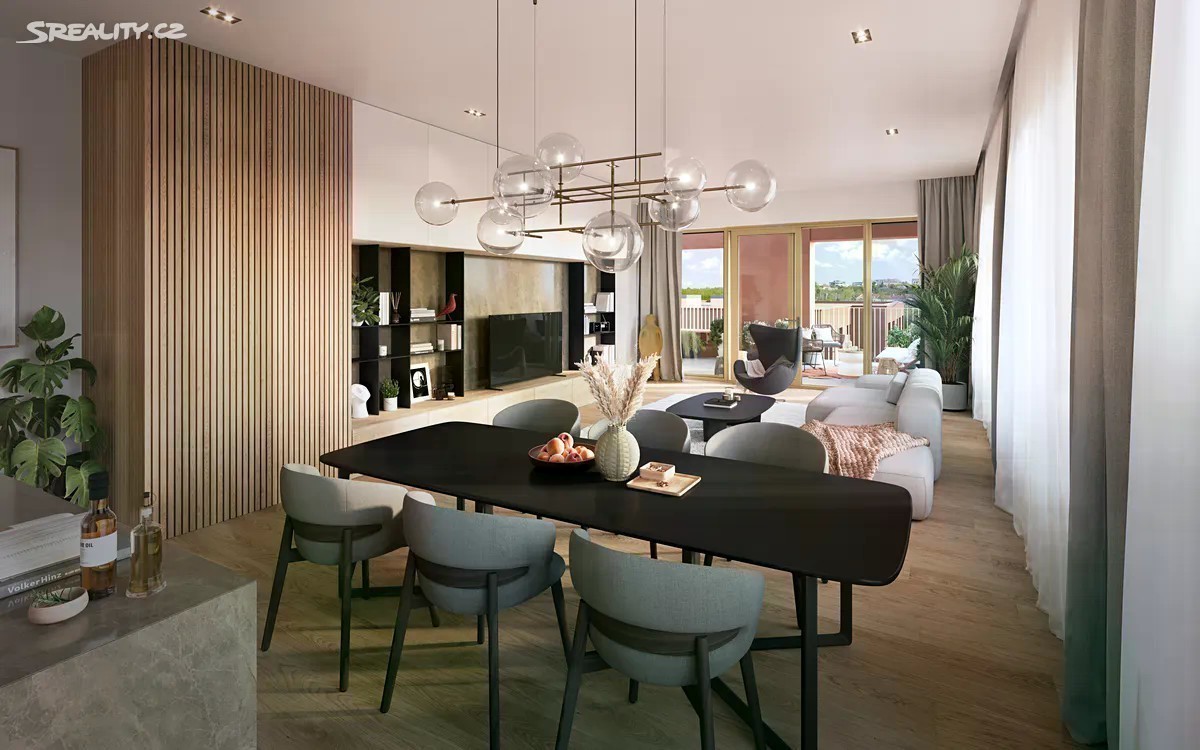 Nový byt E.308 o dispozici 3+kk (75,4 m2) s lodžií (6,4 m2) se nachází na 3. nadzemním podlaží sekce E projektu MOCCA Rezidence. Bytový dům má plánované dokončení v 1Q 2027. Prodej přímo od developera. MOCCA Rezidence nabízí všechny byty ve vysokém standardu Premium, který je synonymem pro moderní dispozice bytů s možnostmi individuálních klientských změn. Ve standardu naleznete značkové materiály vybavení předních světových výrobců keramiky, obkladů a koupelnových baterií. Hliníková okna jsou vybavena trojím zasklením, které perfektně izoluje jak v létě tak i v zimě. Navíc je ve všech oknech realizována i příprava pro předokenní elektrické žaluzie. Byty v posledních patrech jsou osazeny klimatizačními jednotkami. Dřevěné podlahy jsou třívrstvé, dlažby a obklady velkoformátové v moderním designu a několika barevných provedeních. Všechny byty jsou vytápěny teplovodním podlahovým topením a vybaveny technologií výměny vzduchu s centrální rekuperací. V podzemních podlažích jsou majitelům k dispozici garážová stání, zděné sklepy, kočárkárny, dílna a místnost pro mytí kol. Pro všechny majitele bude k dispozici také prostorný, multifunkční cvičební sál, který budou moci volně využívat. Developerský projekt MOCCA Rezidence od společnosti Penta Real Estate zaručuje vynikající dopravní spojení do centra města, ale i na výpadovky a městský okruh. Stanice metra B - Českomoravská je od projektu vzdálená 3 min chůze, což zajišťuje skvělou dopravní dostupnost do centra i dalších částí města. Stanice tramvajové zastávky Poliklinika Vysočany je vzdálena 2 min chůze. K bytu je nutné přikoupit parkovací stání v ceně 672.000 Kč vč. DPH a sklep v ceně 252.600 Kč vč. DPH. Jejich ceny nejsou zahrnuty v uvedené kupní ceně bytu. Parkovací stání a sklepy se nachází na třech podlažích. V případě zájmu nás neváhejte kontaktovat. Více informací o tomto bytu, projektu, lokalitě a kompletní nabídku bytů ve výstavbě najdete na webu projektu MOCCA Rezidence.