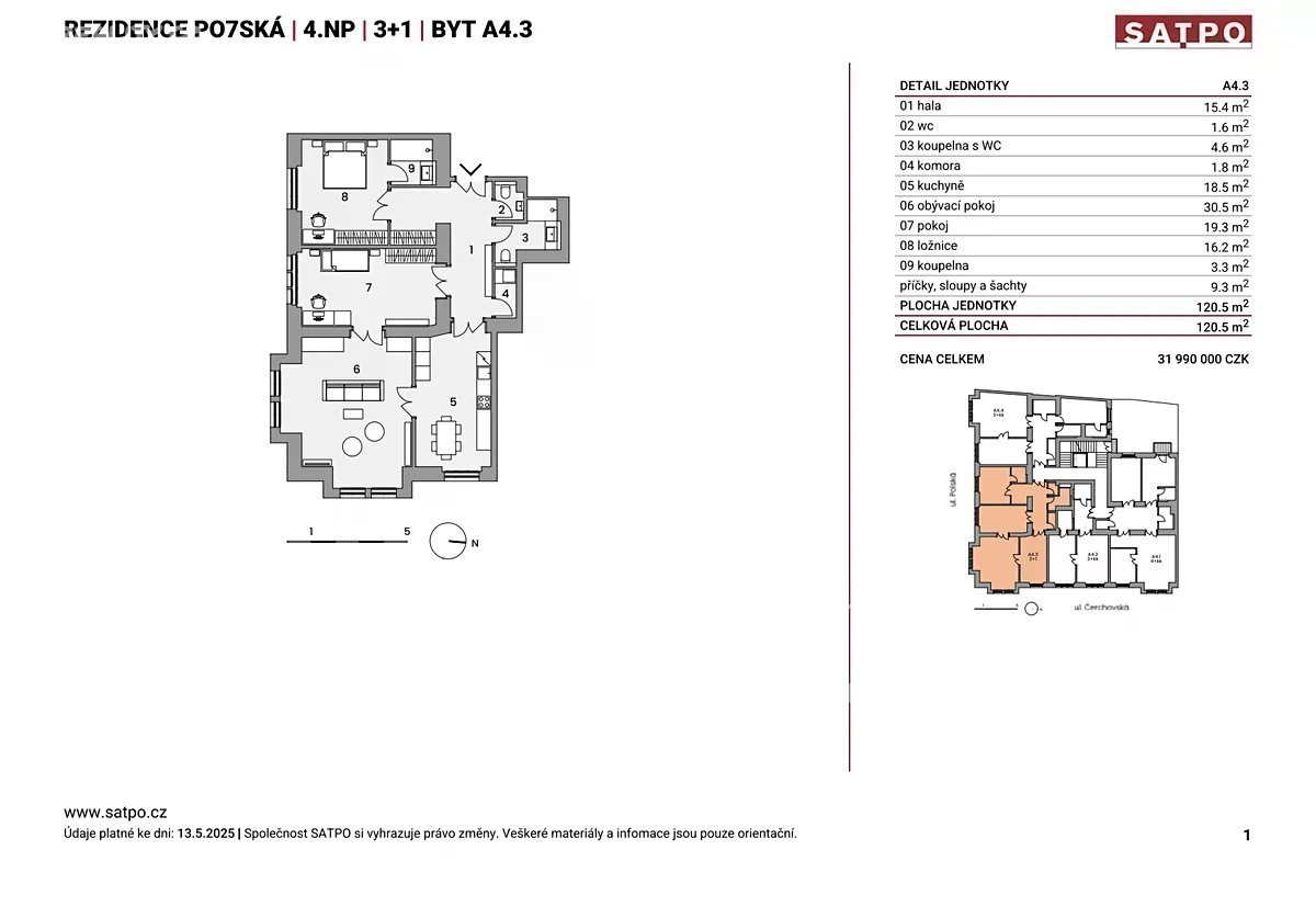 Pozvánka na virtuální prohlídku Rezidence PO7SKÁ: Srdečně Vás zveme na setkání do našeho klientského centra v následujících termínech. středa 5. 11. od 9:00 do 14:00 h čtvrtek 6. 11. od 13:00 do 19:30 h Těšit se můžete na příjemnou atmosféru, virtuální prohlídku a ukázku standardů vybavení. Součástí setkání bude také prezentace společnosti Decoland ze světa interiérů a drobné občerstvení, které zpříjemní Váš čas ve showroomu. Prosíme o rezervaci termínu na internetových stránkách SATPO. Hledáte moderní bydlení s odkazem pro další generace, které má vše, o čem jste snili? Představujeme vám prémiový byt s tradiční dispozicí 3+1 se dvěma koupelnami a komorou. Prostor, soukromí, elegance. Rohový byt ve 4. NP noblesního domu s vnitřní plochou 120,5 m2 vám nabídne výjimečné rodinné zázemí na adrese, která má styl, atmosféru i duši. Ve vinohradské ulici Polská právě dáváme život bytovému domu z počátku 20. století. Už na jaře 2026 bude připravený vám zajistit životní komfort promyšlený do posledního detailu. Realitní projekt roku 2024 oceněný Cenou veřejnosti vyniká především respektem k historii a zachováním původních zdobných prvků v exteriérech i interiérech. Nachází se jen pár kroků od náměstí Jiřího z Poděbrad, Riegrových sadů, stylových kaváren, kvalitních škol i stanice metra. Historická atmosféra Královských Vinohrad se zde potkává s moderním komfortem - kombinace, kterou si zamilujete. Jak byt vypadá? Jeho dispozici otevírá vstupní hala, která vás ihned zavede do vašeho místa klidu, ticha a soukromí - ložnice se samostatnou koupelnou. Dále umožní vstup do dalšího pokoje, který je přístupný i z velkorysého obývacího pokoje, ze kterého lze rovněž vstoupit do kuchyně s jídelnou. Společný prostor uzavírá další koupelna, samostatná toaleta a praktická komora. Byt i celý dům definují špičkové materiály a nadčasový design: - bělená dřevěná podlaha - klimatizace ve všech obytných místnostech - kvalitní nová okna v původním historickém designu - bílá en-suité koupelna s vybavením Villeroy & Boch a Grohe To vše doplňují elegantní společné prostory s historickými detaily, moderní výtah, sklep ke každé jednotce, čipový vstupní systém, videotelefon a příprava pro chytrou domácnost. K dispozici je navíc privátní wellness se saunou a fitness, stejně jako zelený vnitroblok pro chvíle klidu. V rezidenci PO7SKÁ je celkem 31 bytů, 2 ubytovací jednotky a 3 komerční prostory. Prodáno je přes 50 % jednotek a zájem nebývale roste - zajistěte si svůj domov včas. Jste připraveni psát nový příběh na mimořádném místě? Napište nám! Rádi vám o něm povíme více.