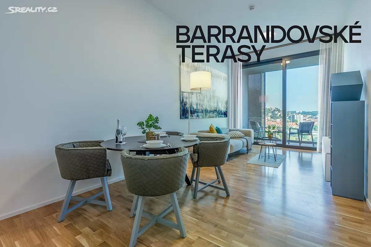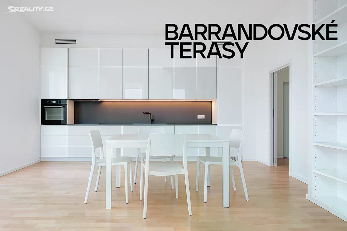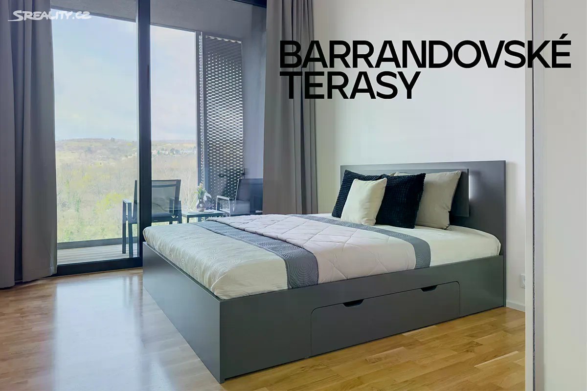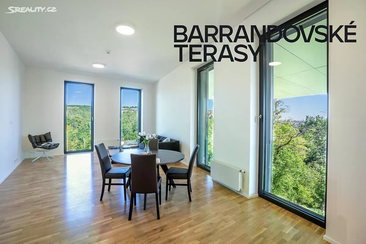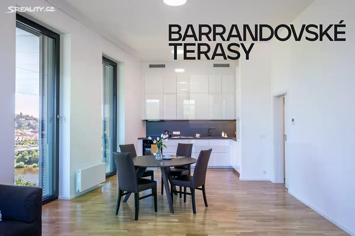 Apartmány k dlouhodobému ubytování na Barrandovských terasách V zastoupení majitele nabízíme k pronájmu moderní ubytování 3+kk s lodžií a výhledem na Vltavu nebo do Prokopského údolí. K dispozici jsou také varianty s předzahrádkou. Ubytování se nachází v originálním apartmánovém domě, který vznikl podle návrhu oceňovaného ateliéru Kuba Pilař architekti a elegantně doplnil ikonickou vyhlídkovou restauraci. Hlavní přednosti ubytování: * Vysoké stropy (až 3,3 m) a velkoformátová okna s termoizolačními trojskly * Posuvné kovové okenice k zastínění a zamezení přehřívání interiéru * Lokální větrací systém zajišťující přirozenou výměnu vzduchu * Třívrstvé dřevěné podlahy v pokojích, italské obklady v koupelně * Kuchyňská linka se spotřebiči Electrolux (myčka, lednice, trouba, indukční deska) * Lodžie s designovým nábytkem Almeco * Ložnice se šatní skříní, vestavěnou TV stěnou, zatemňovacími závěsy, možnost dodání manželské postele * Až dvě komory, pračka kombinovaná se sušičkou * Výkonné internetové připojení na optické síti Pe3ny Net * Bezpečnostní dveře a domácí videotelefon Lokalita a dostupnost: * Dominantní poloha nad Vltavou * Klidné pobytové atrium uvnitř objektu * MHD: autobus 5 minut chůze, Smíchovské nádraží 6 minut jízdy * Občanská vybavenost: Lidl 4 minuty autem * Rekreace: Prokopské údolí, cyklostezky podél Vltavy, NPP Barrandovské skály * Strategický dopravní uzel: Pražský okruh, Jižní spojka, Strakonická, Tunel Blanka, centrum Prahy Další informace: * Měsíční náklady celkem: od 48 527,- Kč (nájem + zálohy na služby + elektřina) * Možnost parkovacího stání: od 2 420 Kč/měs. (vč. DPH) * Případná možnost odpočtu DPH u plátců daně z přidané hodnoty * Nájemce hradí odměnu zprostředkovatele a vratnou kauci * V nabídce jsou k pronájmu i apartmány 1+kk, 2+kk a 4+kk Pro více informací a termín osobní prohlídky kontaktujte makléře nabídky nebo navštivte webové stránky barrandovsketerasy.eu.