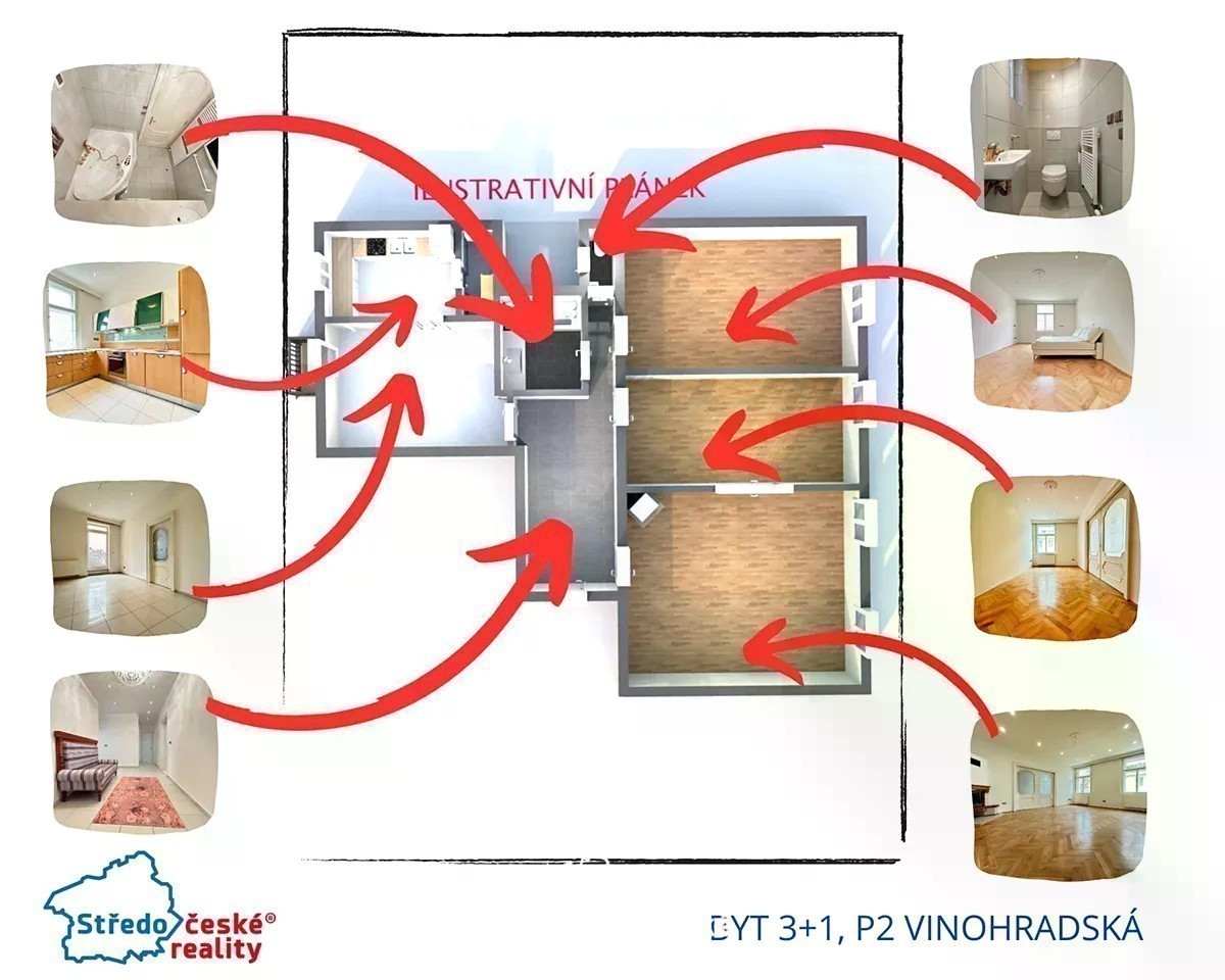 Hledáte prostorný byt v centru Prahy, cca 400m od Václavského náměstí ? Aktuálně Vám můžu nabídnout byt 3+1 (128m2) s balkonem (1,7m2). Byt se nachází ve 4 patře zrekonstruovaného domu, ul. Vinohradská, Praha 2 - Vinohrady, přímo naproti Českému rozhlasu. Dispoziční řešení bytu: Prostorná vstupní chodba, tři samostatné pokoje, koupelna, WC, jídelna se vstupem na balkon s výhledem do dvora, kuchyň se špajzem. V prvním samostatném pokoji je funkční krb napojený na vyvložkovaný komín, dále je tento pokoj oddělen od druhého pokoje pomocí dvoukřídlých šoupacích dveří ve stylu první republiky. Byt prošel v roce 2008 nákladnou rekonstrukcí: nové rozvody elektřiny, vody, odpadu, topení. V bytě zároveň došlo k rekonstrukci koupelny a kuchyně. Dále došlo k výměně nových interiérových dveří vč. obložek, instalaci elektricky ovladatelných rolet. Na podlaze v pokojích jsou přebroušené parkety, v koupelně a kuchyni je dlažba dovezená z Itálie, v chodbě je mozaika z Izraele. Topení v bytě je řešeno vlastním plynovým kotlem (je ve špajzu), v pokojích jsou radiátory. V části bytu, kde je na podlaze dlažba, je podlahové topení. Poplatky vůči společenství vlastníků jsou 3.983,-Kč, dále elektřina a plyn podle spotřeby. Byt je bez omezení vlastnického práva, vyjma hypotéky prodávající. Možnost platby hypotékou, kterou Vám v rámci služeb zajistíme. V okolí je veškerá občanská vybavenost a výborná pěší dostupnost do centra Prahy.