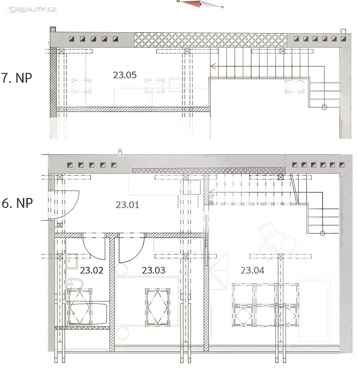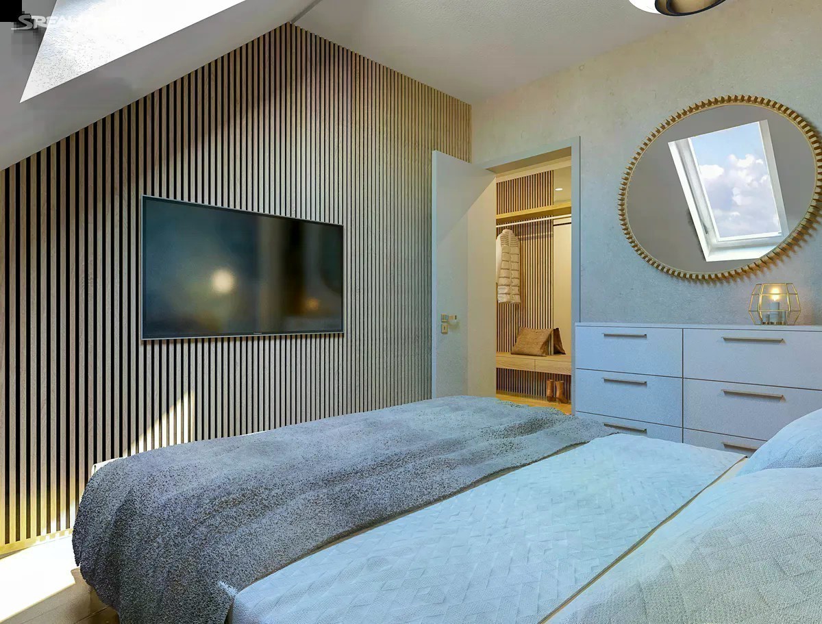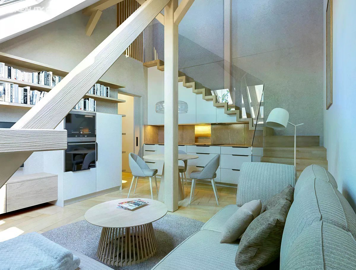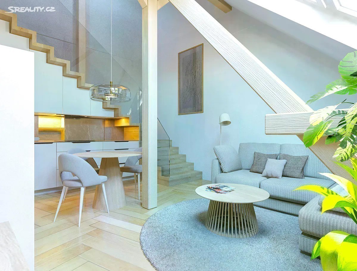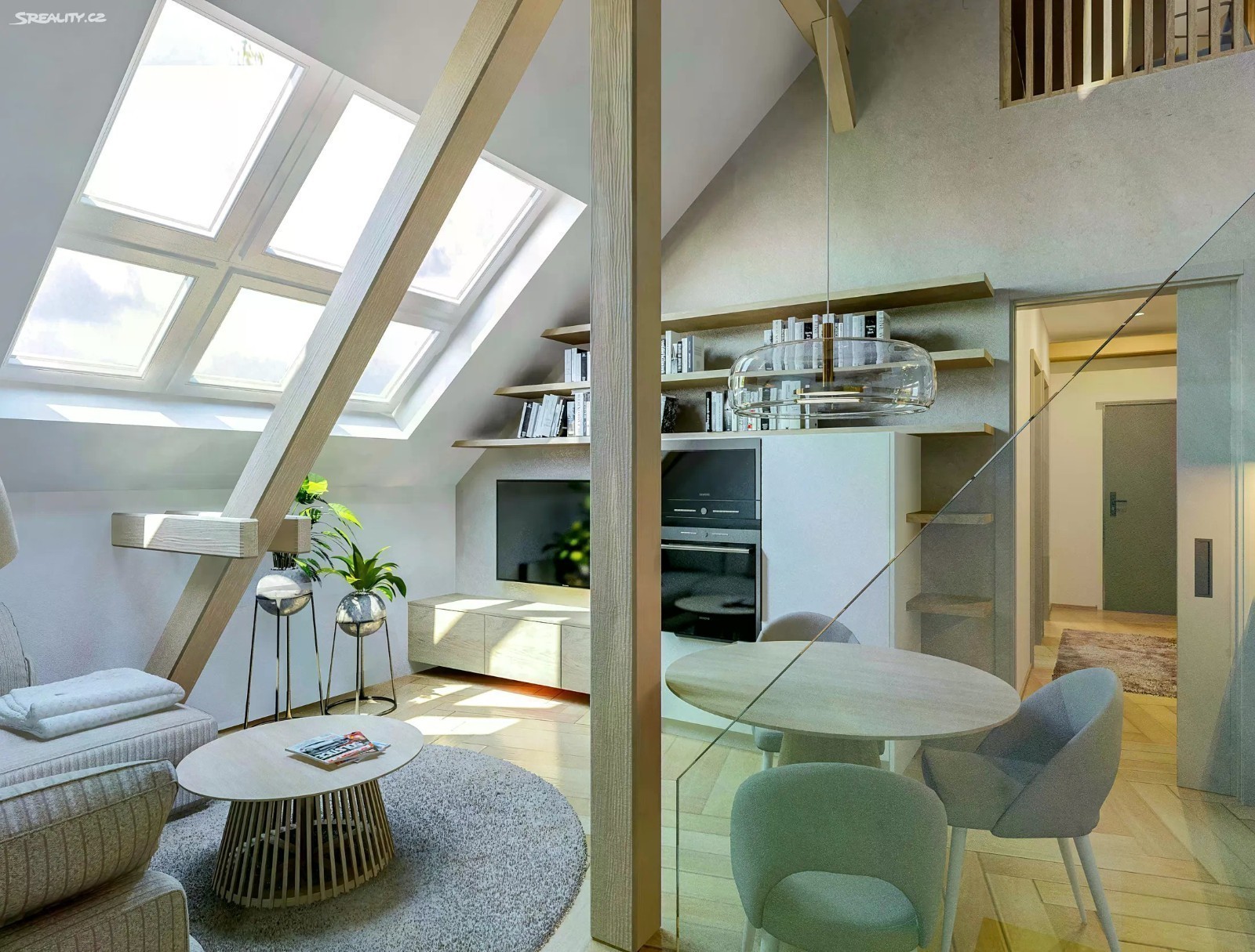Komorní projekt čtyř luxusních půdních bytů v činžovním domě z první republiky - Bartoškova², Praha 4 - Nusle Projekt citlivě spojuje původní architekturu s moderním komfortem a nadstandardním provedením. Samozřejmostí jsou: • chytré dispozice a kvalitní materiály • dostatek denního světla • podlahové topení, klimatizace • nový výtah, sklepní kóje, renovované společné prostory • opravená fasáda a střecha, nové elektrické rozvody v domě, moderní vstupní systém Lokalita nabízí výbornou dostupnost: 4 minuty chůze od tramvají a autobusů na Náměstí Bratří Synků, s plánovaným metrem D v roce 2031. Plánovaný termín dokončení: konec jara 2026. Více informací na projektovém webu viz odkaz vpravo: "Přejít na web" -> -> -> Byt č. 23 je vzdušný mezonet 2+kk o podlahové ploše 57,7m². Spodní patro (6. NP) tvoří prostorná vstupní hala (9,03m²), koupelna s WC (4,94m²), ložnice (8,76m²) a obývací pokoj s kuchyňským koutem (21,15m²), který díky velkému střešnímu oknu nabízí příjemnou atmosféru a dostatek denního světla. Po schodišti se dostanete do horního patra (7. NP), kde se nachází galerie / pracovna (8,62m²), která je samostatným a klidným prostorem odděleným od obytné části bytu. Upozornění: Uvedená prodejní cena je včetně DPH. Uvedená plocha jednotky odpovídá výpočtu podlahové plochy dle platných právních předpisů. Uvedené plochy jednotlivých místností vycházejí z projektu a jsou vypočteny dle platných právních předpisů. Zobrazené vizualizace, fotky, povrchy, materiály, zařízení v koupelnách, rozměry, plochy jednotlivých místností a dispozice mají pouze informativní charakter a mohou se lišit od finálního stavebně-technického provedení. Zařízení znázorněné na vizualizacích není součástí standardního vybavení. Přesný rozsah provedení a specifikace jednotky jsou uvedeny ve smluvní dokumentaci. Uvedené termíny jsou orientační. Vyhrazujeme si právo na změny a tiskové chyby.