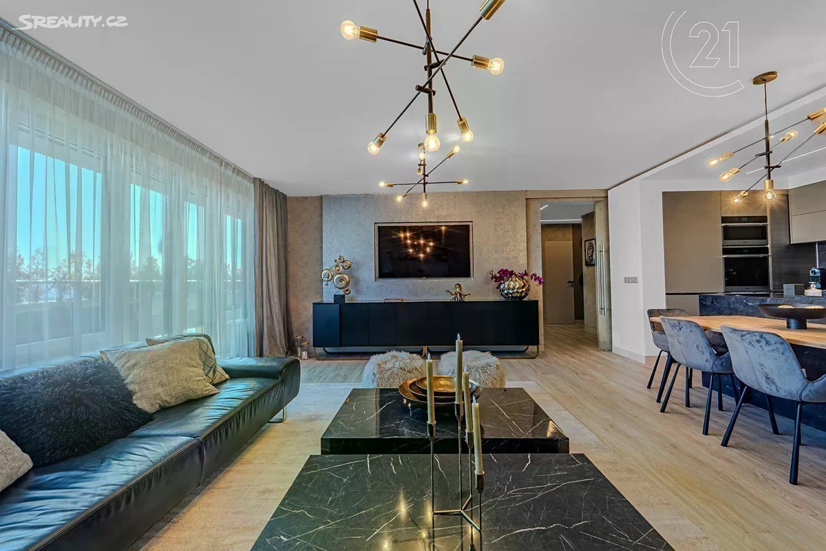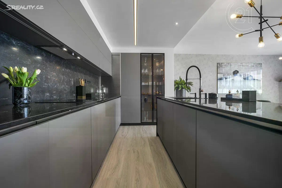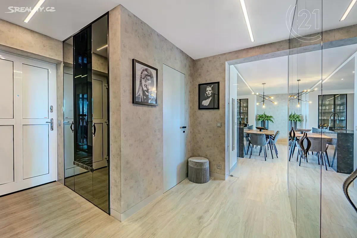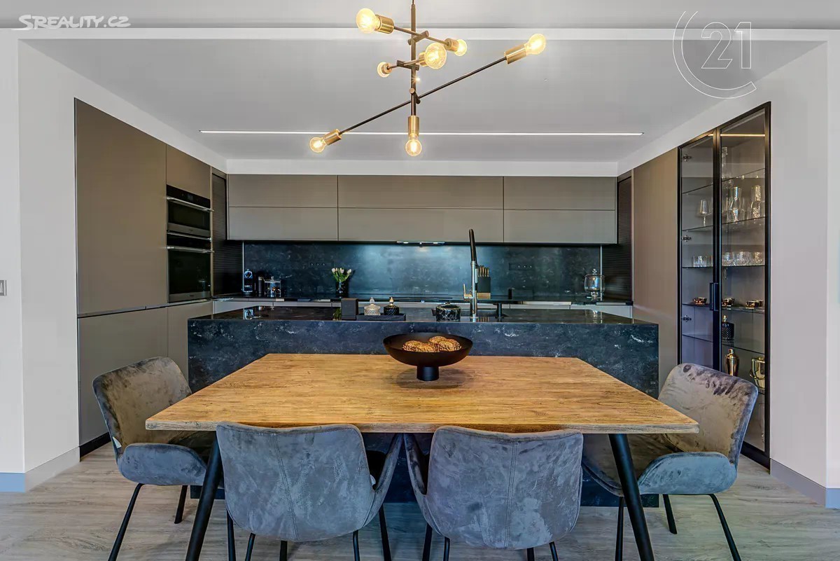 Nabízíme k prodeji zcela nově zrekonstruovaný, elegantní a prostorný byt o dispozici 3+kk a podlahové ploše 89 m², který se nachází v 6. patře rezidenčního komplexu s výtahem. Součástí bytu je dechberoucí terasa o velikosti 29,44 m², garážové stání a sklep. Byt prošel kompletní rekonstrukcí v roce 2024 a prodává se včetně veškerého vybavení a dekorací: - Nová okna (trojskla), předokenní žaluzie, elektroinstalace, rozvody, topení, osvětlení - Sádrové omítky, podhledy a kvalitní podlahy - Designová koupelna se sprchovým koutem (včetně spotřebičů pračky a sušičky) - Luxusní kuchyňská linka na míru s centrálním ostrůvkem, obložená černým kamenem ve velkém formátu - Moderní spotřebiče (lednice, mrazák, trouba, mikrovlnná trouba, varná deska, myčka) - Tapety Roberto Cavalli, boxspring postel s prémiovou matrací - Jedna z ložnic byla upravena jako šatna na míru, lze ji snadno vrátit do původní funkce pokoje Lokalita Praha 8, Troja Vyhledávaná, klidná a zelená lokalita s výbornou dostupností. Stanice metra Kobylisy je jen 5 minut MHD, na městský okruh se autem dostanete za 6 minut. V okolí naleznete veškerou občanskou vybavenost včetně restaurací, supermarketů, pošty, polikliniky i sportovišť. Pro procházky je ideální blízká Botanická zahrada či přírodní památka Velká skála. Další informace: - 1 garážové stání a sklepní jednotka v ceně - Měsíční poplatky: 8 140 Kč včetně elektřiny - PENB: třída C Tento byt ocení každý, kdo hledá moderní a luxusní bydlení s důrazem na detail, styl i funkčnost. Zaujala vás nemovitost? Rádi vám ji ukážeme osobně.