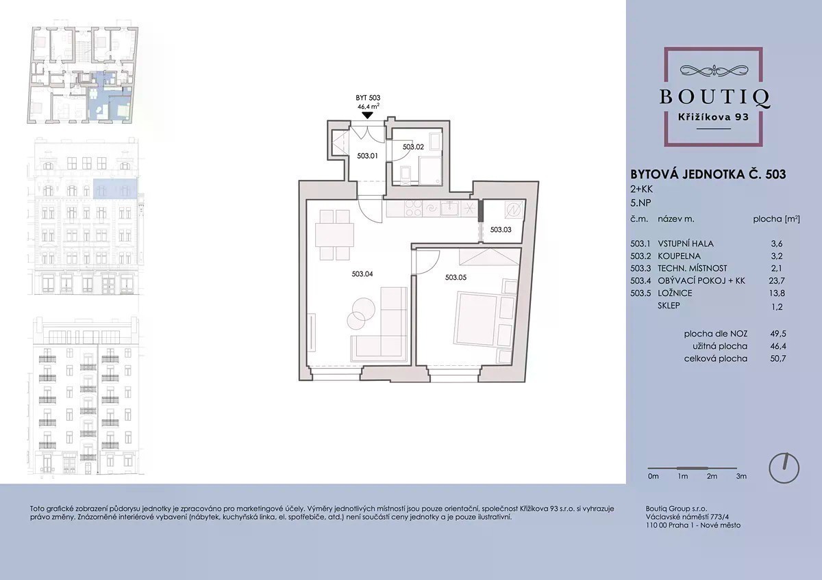 Tento byt o dispozici 2+kk s podlahovou plochou 49 m2 a balkonem 3m2 se nachází v 5. patře kompletně zrekonstruovaného činžovního domu v prestižní části Karlína, na adrese Křižíkova 93. Byt nabízí obývací prostor s kuchyňským koutem, ložnici, designovou koupelnu, balkon orientovaný do tichého vnitrobloku a sklep. Interiér je navržen s důrazem na estetiku i praktičnost, nechybí dubové parkety ve stromečkovém vzoru, moderní smart technologie ani příprava na instalaci klimatizační jednotky. Křižíkova 93 je komorní rezidence, která vyniká pečlivě provedenou rekonstrukcí a citlivým propojením historické architektury s moderním standardem bydlení. Dům nabízí reprezentativní společné prostory, nový výtah, moderní technické zázemí a vysokou míru soukromí. Projekt klade důraz na kvalitu detailu, což osloví i nejnáročnější klientelu. Karlín je dnes jednou z nejžádanějších pražských čtvrtí, který spojuje půvab historických ulic s moderní infrastrukturou a živou atmosférou. Tato lokalita nabízí nejen výbornou dopravní dostupnost, ale i pestrý městský život s vysokou investiční hodnotou. Pro více informací nebo sjednání prohlídky nás neváhejte kontaktovat. Boutiq Real Estate - Vaše spojení s výjimečnými nemovitostmi v Praze.