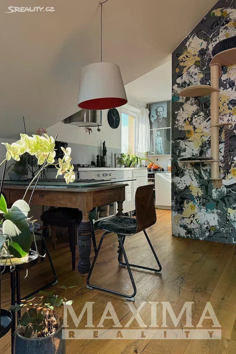 Exkluzivně nabízíme atypický byt 3+kk s terasou v 5.NP s výhledem a soukromím, ve zděné nástavbě zrevitalizovaného bytového domu. Bytovou jednotku o celkové ploše 72 m2 tvoří obývací pokoj (26,60 m2) s kuchyňským koutem, terasa (5,50 m2), další pokoje (12,61 m2 a 9,76 m2), chodba (7,29 m2), šatna (2,04 m2), koupelna (4,30 m2) a samostatné WC (1,65 m2). Benefitem je vlastní půdní úložný prostor. K bytu náleží dále sklep (2 m2).Bytový dům disponuje vlastní kotelnou, kamerovým systémem atd. Bezproblémové parkování, 4 nabíjecí stanice pro elektromobily. Okolí domu vybaveno pro volnočasové aktivity: hřiště pro nejmenší, dvoulanovka, basketbalové hřiště a pumptrack, venkovní posilovna, ping-pong a veřejné ohniště, cyklostezky (cyklotrasa A25 až do centra města) atd. Příjemné bydlení v klidu a soukromí, v kontaktu s přírodou (Škvorecká obora, Klánovický les), v místě s komplexní vybaveností (školky, základní škola, supermarkety, zdravotní středisko, restaurace) i rychlou dostupností centra metropole. Hypotéka lze, rádi Vám zařídíme nejoptimálnější financování. PENB: B