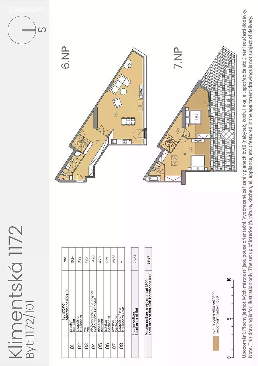 K prodeji je k dispozici prostorný mezonetový byt 4+kk o celkové podlahové ploše 125,64 m², situovaný v atraktivní a vyhledávané lokalitě ulice Klimentská, Praha 1 - Nové Město. Tento světlý a vzdušný byt s atypickým půdorysem je ideální volbou pro ty, kteří hledají pohodlné a reprezentativní bydlení v samém srdci města. Dispozice bytu je rozložena do dvou podlaží. Spodní úroveň tvoří dlouhá vstupní chodba se schodištěm, které ústí do horního patra. V této části bytu se nachází také koupelna se sprchovým koutem, samostatná toaleta, a především prostorný obývací pokoj s kuchyňským koutem o výměře 51,3 m². Tento otevřený prostor poskytuje velkorysé zázemí pro každodenní život, společenské setkávání i relaxaci. Aktuálně je obývací část rozčleněna lehkou příčkou, čímž vznikl další samostatný pokoj s oknem. Díky tomu je byt v současnosti řešen jako 4+kk, přičemž úpravu je možné jednoduše vrátit do původní dispozice 3+kk. Horní patro je vyhrazeno klidové zóně. Nachází se zde dvě prostorné ložnice - hlavní ložnice o velikosti 23,7 m² s vlastní koupelnou, vanou a toaletou, která zajišťuje maximální komfort a soukromí. Druhá ložnice o výměře 17,1 m² může sloužit jako dětský pokoj, pokoj pro hosty nebo pracovna. Dům prošel kompletní rekonstrukcí v roce 2002, jejíž součástí byla i půdní vestavba, v rámci, které vznikla tato bytová jednotka. V bytě je vytápění zajištěno plynovým kotlem, parketové podlahy, interiérové dveře v obložkových zárubních. V jednotce je instalována starší kuchyňská linka včetně spotřebičů. V loňském roce byly opraveny omítky, provedena kompletní výmalba a zrenovovaná parketová podlaha. Byt je vhodný jak pro rodinné bydlení, tak i jako zajímavá investiční příležitost - ať už pro dlouhodobý, nebo krátkodobý pronájem. Díky své poloze v docházkové vzdálenosti od Vltavy, historického centra, obchodů, restaurací i veřejné dopravy nabízí skvělou kombinaci klidného zázemí a života v centru metropole.
