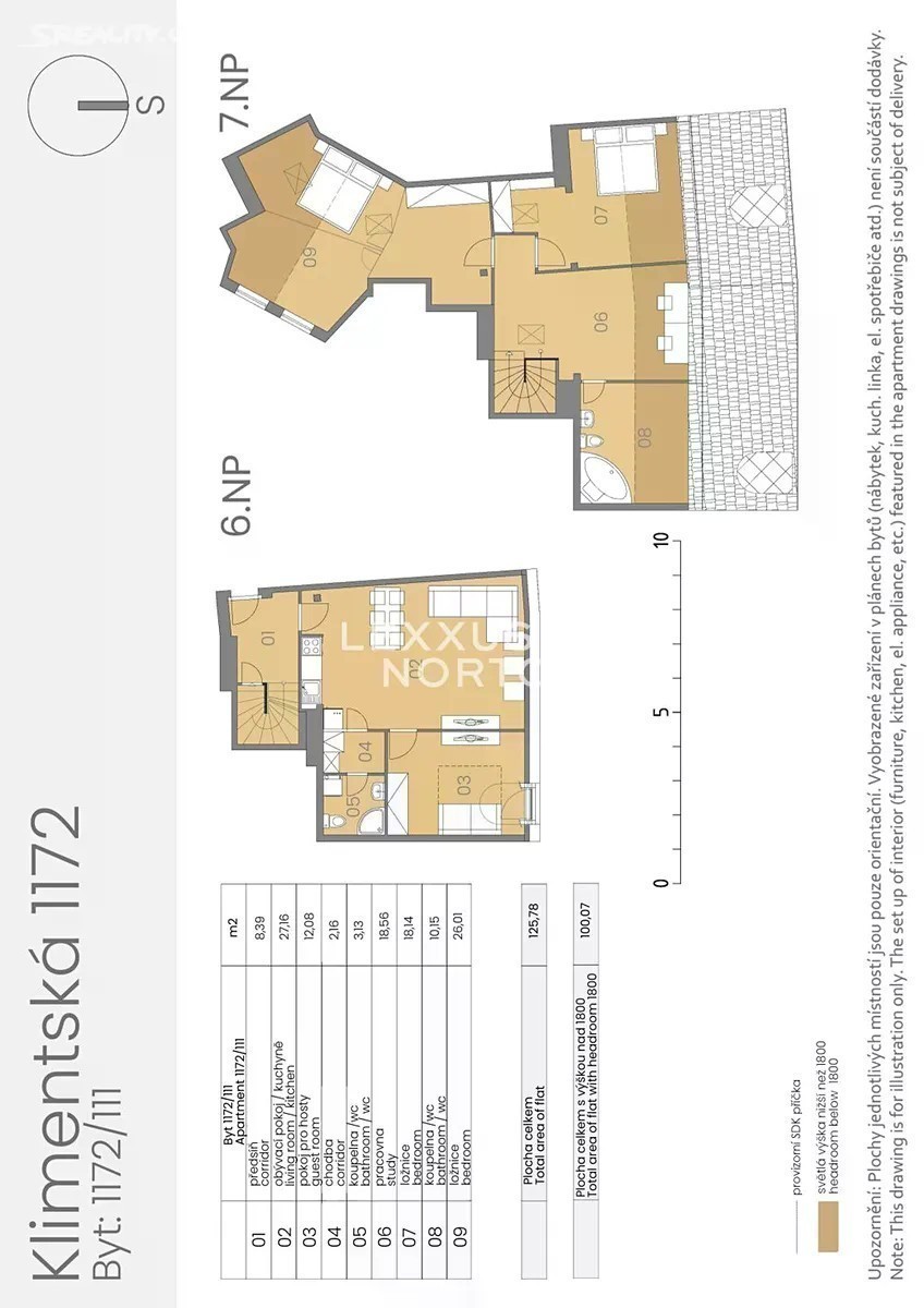 Nabízíme k prodeji prostorný mezonetový byt 4+kk o celkové podlahové ploše 125,78 m², který se nachází v prestižní lokalitě ulice Klimentská na Praze 1 - Nové Město. Tento moderní byt s atraktivním a atypickým půdorysem představuje ideální variantu pro rodiny, které hledají komfortní bydlení s dostatkem prostoru. Byt je rozvržen do dvou podlaží. Spodní úroveň nabízí velkorysou vstupní halu se schodištěm vedoucím do horního patra, dále světlý obývací pokoj o rozloze 27,2 m² spojený s kuchyňským koutem, který tvoří přirozené centrum rodinného života. Na této úrovni se nachází také pokoj pro hosty o velikosti 12,1 m² a koupelna se sprchovým koutem a toaletou, což oceníte zejména při návštěvách nebo při vícepokojovém využití bytu. Horní patro bytu nabízí klidovou zónu s dobře oddělenými místnostmi. Nachází se zde pracovna o rozloze 18,6 m², která poskytuje ideální prostředí pro práci z domova, studium nebo jako pokoj pro dalšího člena domácnosti. Dále zde najdete dvě prostorné ložnice o výměrách 26 m² a 18,14 m². Komfort zajišťuje i druhá koupelna vybavená rohovou vanou a toaletou. Bytová jednotka se prodává bez dalšího nábytku. Dům prošel kompletní rekonstrukcí v roce 2002, jejíž součástí byla i půdní vestavba, v rámci, které vznikla tato bytová jednotka. V bytě je vytápění zajištěno plynovým kotlem, parketové podlahy, interiérové dveře v obložkových zárubních. V jednotce je instalována starší kuchyňská linka včetně spotřebičů. V loňském roce byly opraveny omítky, provedena kompletní výmalba a zrenovovaná parketová podlaha. Díky své velikosti, rozvržení a poloze je tento byt skvělou volbou pro rodinné bydlení i jako investice s potenciálem dlouhodobého pronájmu. Klimentská ulice nabízí výbornou občanskou vybavenost, klidné prostředí a zároveň snadný přístup do samotného centra města.