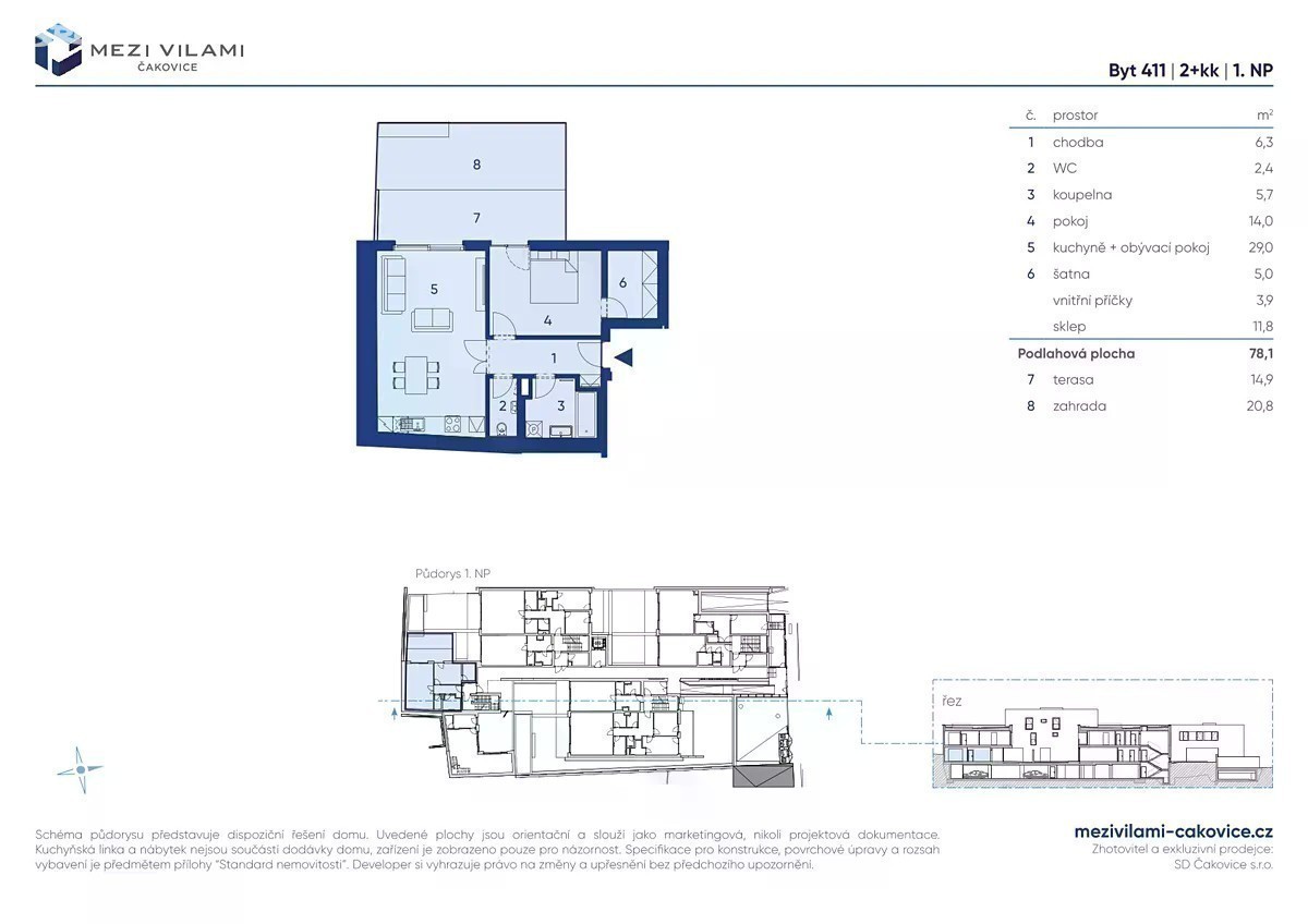 Objevte kouzlo bydlení v komorním rezidenčním projektu se 17 bytovými jednotkami v samotném srdci Čakovic. Navíc s možností získat dotovanou hypotékou s úrokem 2,89%! Projekt Mezi vilami Čakovice nabízí jedinečné bydlení přizpůsobené různorodým životním potřebám. Můžete si vybírat z bytů s dispozicemi 1+kk od 45,8 m², 2+kk od 78,2 m² nebo velkorysé 3+kk či rodinné mezonety s výměrou až 110,9 m². Každý z bytů má terasu či lodžii, byty v 1 NP také zahradu či předzahrádku. Ke každému z bytů také náleží minimálně jedna sklepní kóje a kryté garážové stání. Intimní developerský projekt Mezi vilami Čakovice klade důraz na moderní architekturu a vysoce kvalitní vybavení včetně podlahového vytápění či HS portálů již ve standardu, které zajišťuje pohodlí a styl. Všechny nabízené byty jsou promyšleně navrženy tak, aby poskytly svým obyvatelům prostor, funkčnost i soukromí. Bytový dům, zasazený do původní zástavby v těsném sousedství Čakovického zámku, přináší svým obyvatelům nejen klidnou sousedskou atmosféru a sounáležitost, ale těží také z blízkosti základních služeb, zeleně i vynikajícího dopravního spojení do metropole. Čtyři mezi sebou propojené dvou až třípodlažní bytové domy nabízí maximum soukromí jako když bydlíte v rodinném domě, navíc však přináší řadu dalších výhod jako je možnosti využívat společné prostory pro kola a kočárky, výtah, či správa v rámci SVJ.