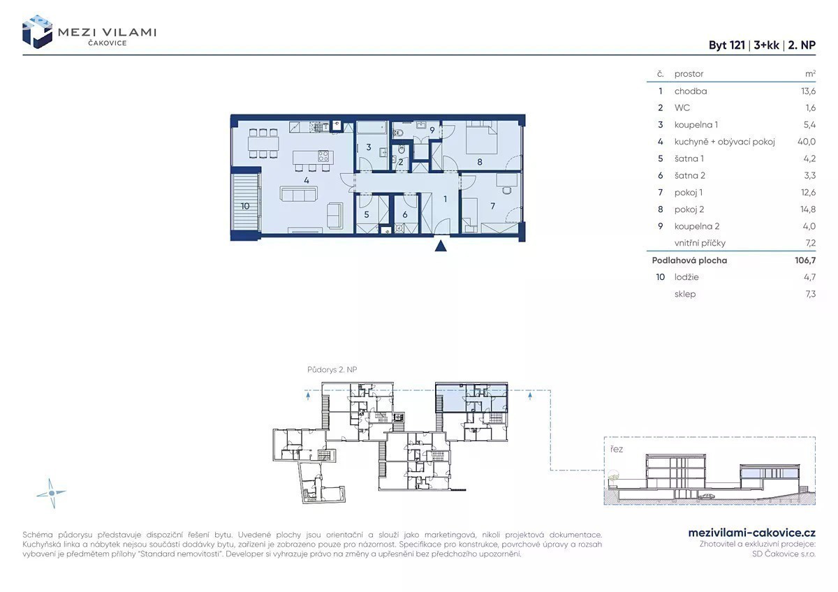 Objevte kouzlo bydlení v komorním rezidenčním projektu se 17 bytovými jednotkami v samotném srdci Čakovic. Navíc s možností získat dotovanou hypotékou s úrokem 2,89%! Projekt Mezi vilami Čakovice nabízí jedinečné bydlení přizpůsobené různorodým životním potřebám. Můžete si vybírat z bytů s dispozicemi 1+kk od 45,8 m², 2+kk od 78,2 m² nebo velkorysé 3+kk či rodinné mezonety s výměrou až 110,9 m². Každý z bytů má terasu či lodžii, byty v 1 NP také zahradu či předzahrádku. Ke každému z bytů také náleží minimálně jedna sklepní kóje a kryté garážové stání. Intimní developerský projekt Mezi vilami Čakovice klade důraz na moderní architekturu a vysoce kvalitní vybavení včetně podlahového vytápění či HS portálů již ve standardu, které zajišťuje pohodlí a styl. Všechny nabízené byty jsou promyšleně navrženy tak, aby poskytly svým obyvatelům prostor, funkčnost i soukromí. Bytový dům, zasazený do původní zástavby v těsném sousedství Čakovického zámku, přináší svým obyvatelům nejen klidnou sousedskou atmosféru a sounáležitost, ale těží také z blízkosti základních služeb, zeleně i vynikajícího dopravního spojení do metropole. Čtyři mezi sebou propojené dvou až třípodlažní bytové domy nabízí maximum soukromí jako když bydlíte v rodinném domě, navíc však přináší řadu dalších výhod jako je možnosti využívat společné prostory pro kola a kočárky, výtah, či správa v rámci SVJ.