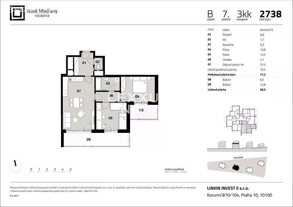 Nové Modřany vám nabízí k prodeji velkorysý byt 3+kk se dvěma balkóny. Byt se nachází v 6. podlaží moderní rezidence, která vyrůstá v pražských Modřanech. Projekt zkolaudován, byty jsou ihned k předání. Nové Modřany jsou unikátní projekt, který v sobě spojuje komfort velkoměsta a svobodu přírody. Nadstandardní byt 3+kk o velikosti 77,2 m2 vás okouzlí 2 balkóny, které developer zvětšil, aby byt propojil s okolní zelení. Jeden velkorysý balkón spojuje obývací pokoj s kuchyňským koutem a jednu z ložnic. Druhou ložnici s vlastním balkónem doplňuje koupelna s vanou a samostatná toaleta. Součástí projektu Nové Modřany je venkovní posilovna, kavárna, 3 dětská hřiště s trampolínami a na východní straně vyrůstá park. V projektu také najdete kočárkárnu, stojany na koloběžky a elektrické nabíječky na auta. Modřany patří mezi pražské čtvrti, kde je živo. Stačí seběhnout k Vltavě, sednout na kolo nebo se projít v Modřanské rokli. Na nákupy i zmrzlinu budete chodit pěšky a všechno, co potřebujete, si zařídíte v Modřanech. Tramvaj z Modřan vás bez přestupu doveze do centra za pár minut a přímé napojení na pražský okruh vás plynule propojí s D1 i ostatními dálnicemi.