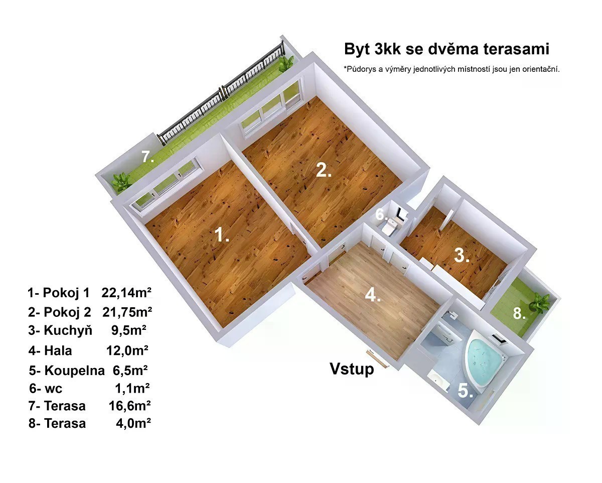 Rádi bychom Vám představili k prodeji velmi zajímavý byt s halou a se dvěma terasami, s možností případné redispozice, nacházející se v pátém patře kvalitně opraveného funkcionalistického domu s novým výtahem, v ulici Podolská na Praze 4. K obrovské výhodě jednotky patří pak zejména dvě velkorysé soukromé terasy (+ 22m2) s dechberoucím výhledem na Prahu a Podolí. Ty jsou orientovány západ - východ. Byt je řešen zcela v duchu doby, především prakticky. Nabízí dva veliké a světlé obytné pokoje s okny na západ, dále velikou halu, prostornou koupelnu s oknem, sprchou a rohovou vanou, WC zvlášť. Kuchyně s jídelnou je stranou, má vlastní letní terasu, směřuje na východ do klidného vnitrobloku. Stav bytu je aktuálně udržovaný po rekonstrukci sociálního zázemí, štuků, podlah pokojů a veškerých instalací, jakož i repasi dveří a oken. K zajištění pohodlí během letních dnů nechybí klimatizace. Režie nemovitosti je cenově velmi příznivá, neboť má dům vlastní novou plynovou kotelnu. Fond oprav činí pouhých 2.500,- Kč. Dům je jinak ve výborném stavu po vech opravách, plánují se solární kolektory na střeše, k jednotce patří také sklep. List vlastnictví nemovitosti je bez jakýchkoliv zatížení nebo zástav! V přímém okolí domu se nachází veškerá pomyslná občanská vybavenost, což zajišťuje místním obyvatelům jejich komfortní životní styl. Najdeme zde nejen četné oblíbené restaurace a zahrádky, ale i parky a sportovní a odpočinkové zóny, venkovní posilovnu či dětské hřiště. Pokud hledáte pohodlné bydlení v klidném prostředí této exkluzivní lokality a zároveň pracujete třeba v okolí, nebo nedaleko centra města, neváhejte se přijít podívat, může to být nemovitost přesně pro Vás. Makléř je připraven Vám poskytnout všechny potřebné informace : ) Doporučujeme prohlídku!