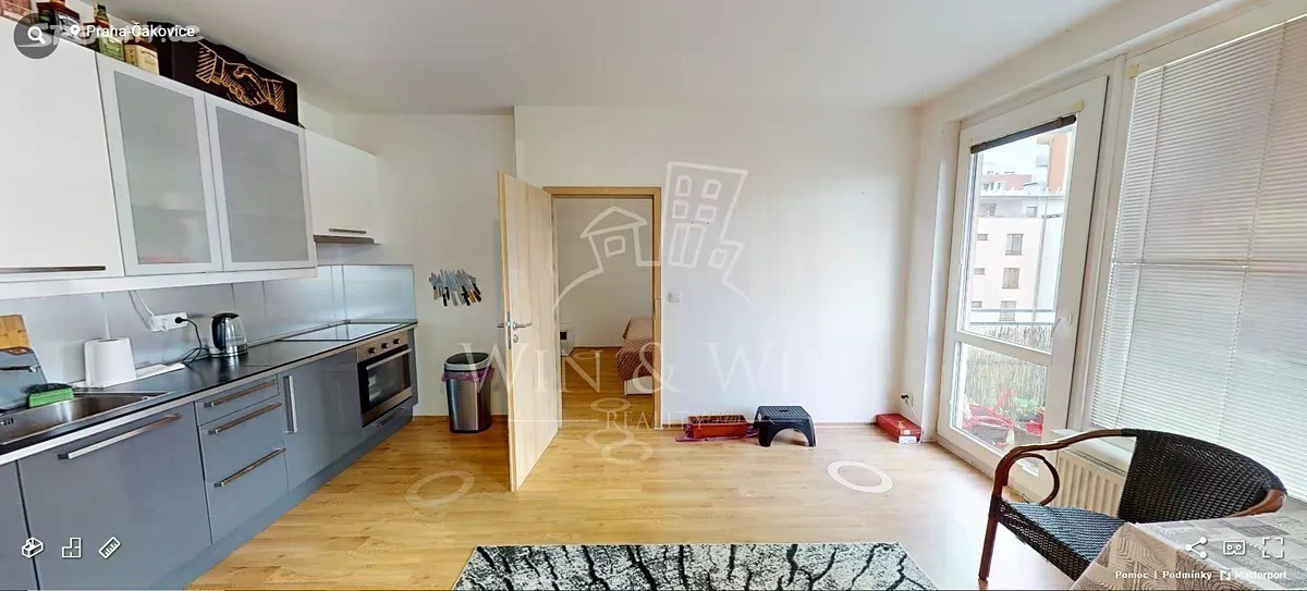 Nabízíme k prodeji moderní byt o dispozici 2+kk s podlahovou plochou 60,16 m2 s prostornou terasou 4,68 m2 v oblíbeném a klidném rezidenčním projektu Čakovický park na Praze 9. Byt se nachází ve 4. nadzemním podlaží a nabízí komfortní a prostorný interiér. Vstupní hala o velikosti 4,53 vede do obývacího pokoje 24,57 m2 s kuchyňským koutem, který je plně vybaven kuchyňskou linkou. Ložnice 14,17 m2 disponuje praktickou šatnou. Koupelna je vybavena vanou, topným tělesem a prostorem pro pračku. Z obývacího pokoje je vstup na terasu, která nabízí krásné výhledy do okolí. K bytu náleží sklep a jedno garážové stání. Cena je včetně parkovacího stání, sklepu a po výrazné slevě na rekonstrukci (zničené dveře a futra po předešlým nájemníkovi) nemovitost je tedy vhodná pro někoho kdo si chce byt pro sebe přizpůsobit. Bytový dům byl zkolaudován v roce 2012, okna jsou plastová, vícekomorová. V obývacím pokoji, v předsíni, v ložnici a v šatně je laminátová plovoucí podlaha, v koupelně je dlažba. Bytové domy jsou zasazeny do zeleného prostředí s klidovými zónami, které doplňují dětská hřiště a sportoviště. Lokalita je ideální pro rodiny, milovníky přírody a zároveň nabízí skvělou dopravní dostupnost do centra Prahy. V okolí se nachází mateřská a základní škola, střední škola, gymnázium, lékař, hypermarkety, pošta, restaurace, dětská hřiště, cyklostezky, Čakovický zámecký park, koupaliště a sportovně-relaxační centrum