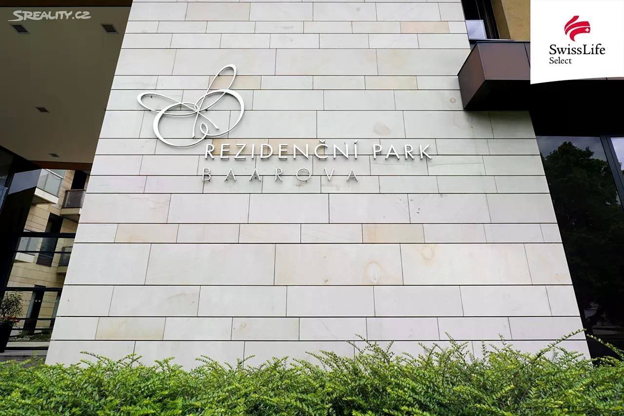 Ideální byt pro rodiny s dětmi v uzavřeném areálu Rezidenčního parku Baarova, splní požadavky nejen na moderní bydlení ale i bezpečí pro Vaše děti. Prostorný a světlý byt se třemi balkóny, parkovacím stáním a sklepem se nachází kousek od areálu Brumlovka s veškerou občanskou vybaveností. Rezidenční park Baarova byl postaven v roce 2012. Areál je oplocený, pro rezidenty je zde recepce s ostrahou, dětské hřiště, lezecká stěna, park, kolárna a kočárkárna, vnitroblok s udržovanou zahradou pro setkání rodin, kde si děti hrají v bezpečí a je zde možnost poznat sousedy. Byt se nachází ve 3. NP (výtah je samozřejmostí) a je proveden ve vysokém standardu - dřevěné podlahy, venkovní rolety, francouzské eurookna, centrální vytápění. Byt má 116, 5 m2, balkóny celkem 8,6 m2 a sklep 7 m2. Vjezd a výjezd do podzemního parkovaní je na rozpoznání SPZ vašeho auta. Dispozice bytu je velmi příjemná - velká vstupní chodba s vestavěnými skříněmi s dostatkem úložného prostoru, toaleta pro hosty, velký obývací pokoj s balkonem a s plně vybaveným kuchyňským koutem, hlavní ložnice s balkonem a s en-suite koupelnou, dětský pokoj/pracovna opět s vlastním balkonem, druhá koupelna s vanou, komora s přípojkou na pračku. Lokalita rezidence je ideální jak pro dobrou dostupnost do centra, tak i výborná dostupnost hned na magistrálu a jižní spojku, D1. Do centra je to 2 minuty autobusem na metro C - Budějovická. Kousek je i nákupní centrum Arkády Pankrác nebo DBK Budějovická. V okolí je veškerá občanská vybavenost.