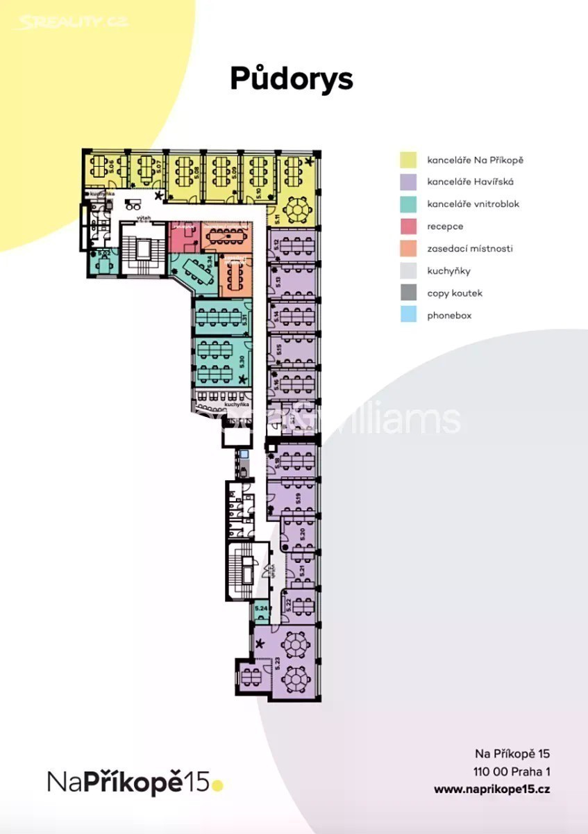 Sdílené kanceláře (již od 11 m2) s flexibilní dobou nájmu na nejprestižnější obchodní adrese v centru města. Cena za osobu v soukromé kanceláři od 7 200 Kč / měsíc vč. služeb a vybavení. Plně vybavená soukromá kancelář pro 6 osob o čisté kancelářské ploše 27,1 m2. Celková plocha jednotky vč. sdílené plochy činí 38,7 m2. Servisované kanceláře Na Příkopě 15 se nachází ve funkcionalistické budově známé jako Dětský dům. Projekt sdílených kanceláří je ideální pro start-upy či menší firmy hledající především flexibilní dobu nájmu. K dispozici jsou plně vybavené samostatné kanceláře různých velikostí či pop-up office. Nájemci mohou využívat služby recepce, zařízené zasedací místnosti, vybavenou kuchyňku a bezplatnou Wi-Fi. Parkování je k dispozici přímo v budově. Lokalita: Vynikající dostupnost autem i veřejnou dopravou - v pěším dosahu stanic metra Můstek (trasa A, B) a Náměstí Republiky (trasa B), Muzeum (trasa C), tramvajových spojů, vedle magistrály s přímým spojením na D1. Vlaková stanice Masarykovo nádraží a Hlavní nádraží je méně než 5 minut chůze. V blízkosti naleznete celou řadu kvalitních restaurací a kaváren, obchodů, ale i kulturních zařízení a historických památek. Služby sdílených kanceláří Na Příkopě 15: Podpora denní recepce na patře (od 9:00 do 17:00 hod.) Příjem pošty a balíků 24 vybavených kanceláří od 11 m2 do 70 m2 Plně vybavené zasedací místnosti (k dispozici nejen nájemcům kanceláří) Phonebox Pop-up office Coworking Zařízená kuchyňka Multifunkční tiskárny Vysokorychlostní Wi-Fi IT podpora a právní poradenství Vybavení a standard budovy: Moderní recepce 24/7 Parkování v zakladači Ostraha 24/7 Otevíratelná okna Klimatizace Vnitřní žaluzie Výtah Ceník servisovaných kanceláří Na Příkopě 15 včetně služeb: Coworking: Hot desk. 350 Kč/den Hot desk 24/7. 5 500 Kč/měsíc Nájemné a poplatky jsou uvedeny bez DPH. Nájemce neplatí provizi.