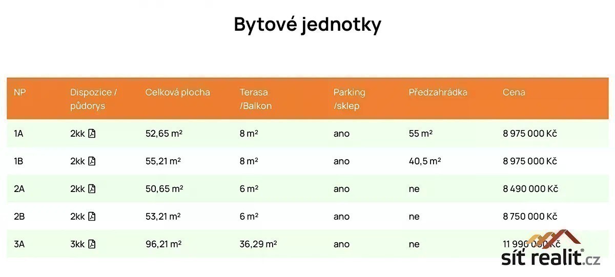 Pasivní třípatrový bytový dům je novostavba v energetické třídě A, která díky nejmodernějším technologiím zajišťuje vysokou úspornost a komfort. Dům nabízí 5 moderních bytů ve 3 nadzemních podlažích. Bytový dům stojí na vlastním pozemku a je obklopen oploceným pozemkem, který zahrnuje společnou zahradu. Pro volný čas je zde možnost vybudování dětského hřiště, pergoly nebo ohniště. K dispozici je přístupový chodník a pojezdová brána. Bydlení v klidné části Prahy 6 - Ruzyně, v původní vilové zástavbě. Zde na vás čekají příjemné procházky k retenční nádrži Jiviny nebo do 1,5 km vzdálené Obory Hvězda. Díky své poloze a poklidnému charakteru je tento bytový dům ideální jak pro rodiny s dětmi, tak pro seniory. 4 garážová stání pod domem a 1 parkovací místo před domem. Garáže jsou ideálně umístěné pro snadný přístup z venku i zevnitř domu a sklepní jednotky jsou doslova jen pár metrů od vašeho zaparkovaného auta. Byty v domě jsou dispozičně navrženy jako 2+kk a 3+kk. V prvním nadzemním podlaží se nacházejí 2 bytové jednotky o velikosti 2+kk, každá s předzahrádkou 40m2 nebo 55m2, která zajišťuje dostatek soukromí. V druhém nadzemním podlaží jsou ke dvěma bytům 2+kk prostorné balkony. Ve třetím nadzemním podlaží je umístěn byt 3+kk se dvěma rozlehlými terasami. Byt 2kk 2.NP-A - 50,65m2 (z toho je balkon 6m2), druhé podlaží domu - včetně. garážového stání a sklepa. Bytový dům v ulici Na Jivinách, která ústí do Karlovarské ulice, nabízí výbornou dopravní dostupnost autem ze všech směrů. Přímé napojení na pražský okruh, dálnice směr Plzeň, Karlovy Vary, Slaný a D1 je velkou výhodou, díky které se vyhnete často přeplněným ulicím jiných částí Prahy. V blízkosti se nachází základní a mateřská škola (4 zastávky autobusem č. 225, 1,3km), městská knihovna, Poliklinika Řepy, OC Delta, OC Šestka, restaurace, kavárna. TJ Ruzyně s pronájmem sportovišť 1km, lezecká stěna a dětské hřiště 1 zastávka autobusem č. 225, cyklotrasy. V případě dotazů mě neváhejte kontaktovat telefonem i mailem 7 dní v týdnu.