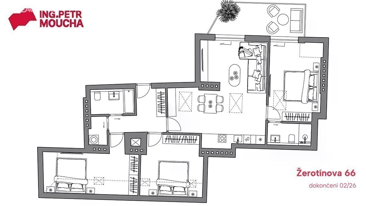 Nabízíme k prodeji nový byt 4+kk o rozloze 100 m² s terasou o rozloze 11,8 m², nacházející se v 6. nadzemním podlaží bytového domu v klidné lokalitě pražského Žižkova, v ulici Žerotínova. Byt je součástí kompletní rekonstrukce domu, kterou realizujeme jako rodinná stavební firma s dlouholetou tradicí v půdních nástavbách a rekonstrukcích. Každý projekt je pro nás srdeční záležitostí, a proto nabízíme možnost výběru finálních materiálů (podlahy, obklady, sanitární vybavení), aby se nový domov přizpůsobil vašim představám. Parametry bytu a domu Velikost bytu: 4+kk, 111,8 m², z toho 11,8 m² terasa Stav: Novostavba v půdní nástavbě Dokončení: Předpokládaný termín - jaro 2026 Energetická náročnost bytu: Třída B (úsporný provoz) Možnost přípravy na klimatizaci Rekonstrukce domu: Nový výtah s výstupem přímo na patra Byt je nabízen bez zprostředkovatelů přímo od vlastníka, což eliminuje dodatečné náklady na provize. Skvělá lokalita na Žižkově poskytuje veškerou občanskou vybavenost, vynikající dopravní dostupnost i klidné prostředí pro život. Byt je také ideální investiční příležitostí v jedné z nejoblíbenějších částí Prahy. V případě zájmu o více informací nás neváhejte kontaktovat!