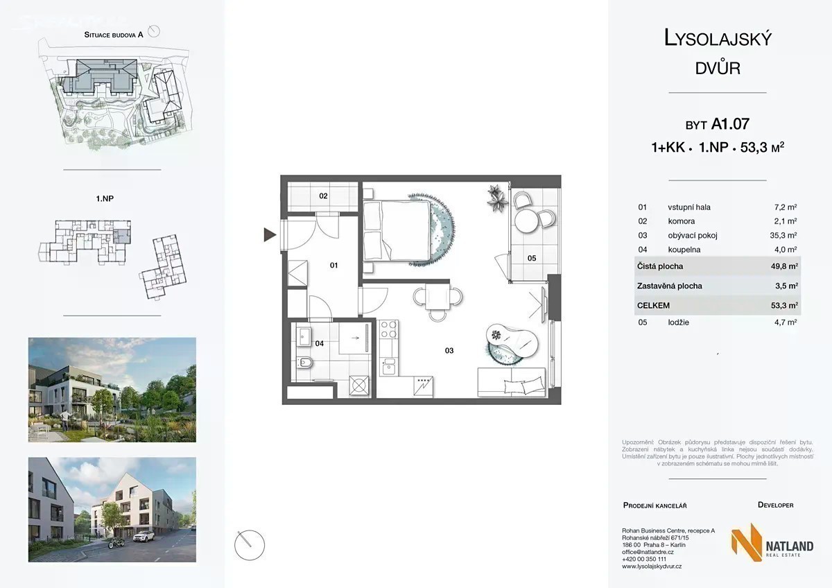 Lysolajský dvůr Zajímavě řešený jihozápadně orientovaný byt slodžií. Obývací pokoj s oddělelou částí pro spaní, koupelna se sprchovým koutem a vývodem vody pro pračku, vstupní hala s místem pro vestavěnou skříň, komora. Možnost individuální prohlídky bytu. Dokončení již na jaře 2025!
