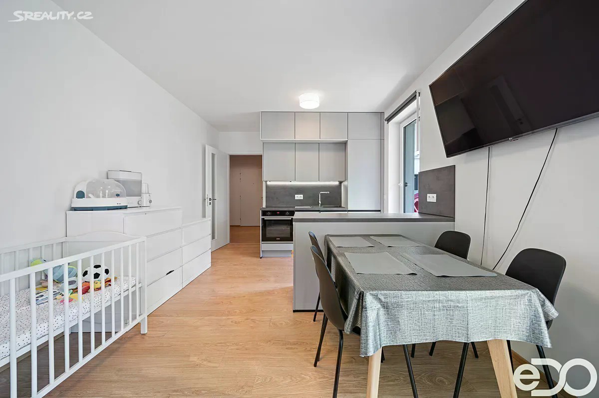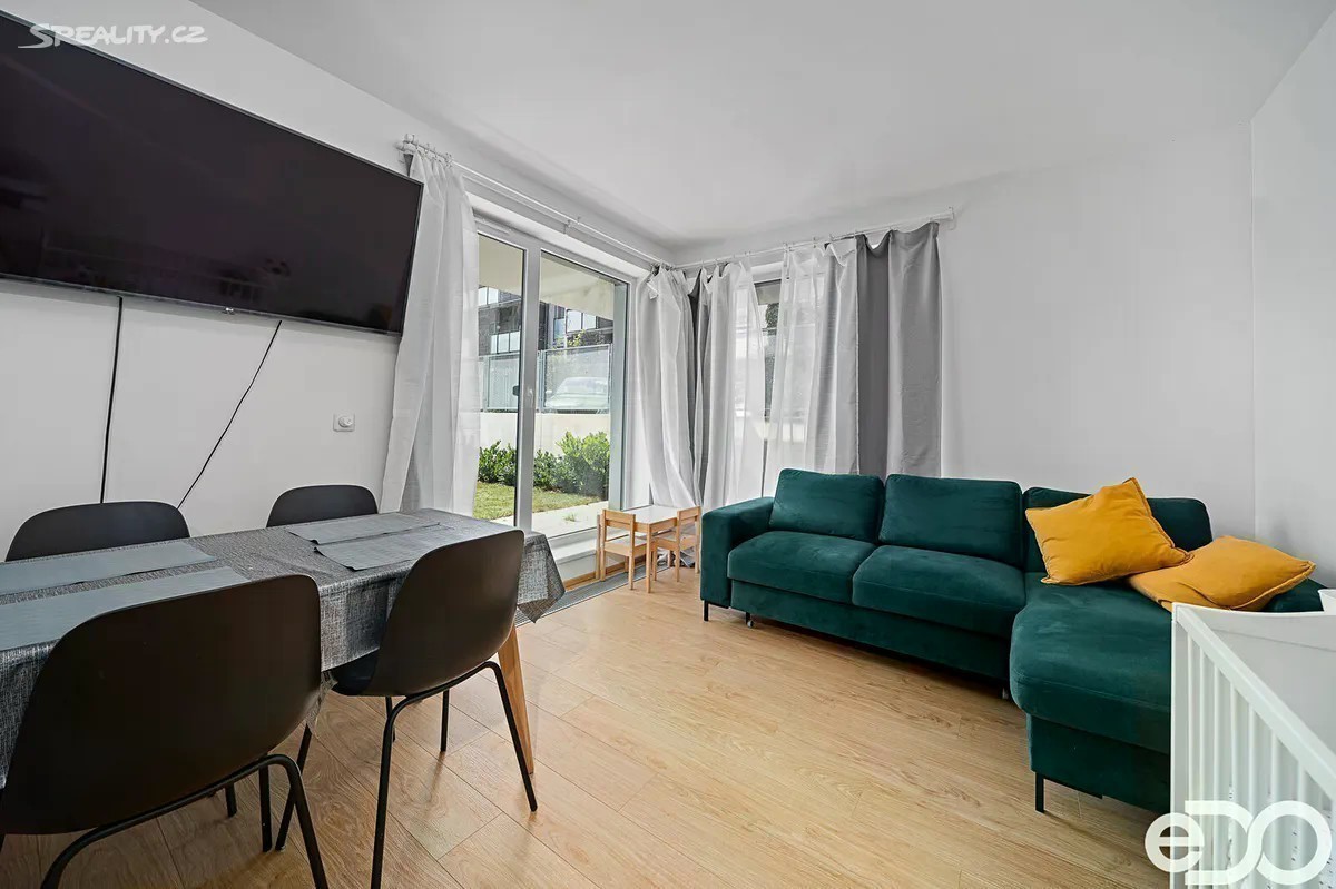 Představujeme vám jedinečnou příležitost stát se majitelem bytu 2+kk v novostavbě bytového domu v Praze Hrdlořezích, bytem s vlastní zahradou, terasou, parkovacím stáním a sklepem. Byt se nachází v prvním patře skeletového bytového domu. Největší místnost v bytě slouží jako kuchyně s jídelním koutem a obývací pokoj zároveň. Kuchyňská linka je vybavena moderními vestavnými spotřebiči. Další místnost pak slouží jako ložnice. Z obou pokojů je pohodlný vstup na terasu a zahradu. Koupelna je vybavena vanou a nabízí dost místa pro umístění pračky se sušičkou. Velkou výhodou je samostatná šatna, která je přístupná přímo z prostorné chodby. Díky velkým oknům působí byt velmi vzdušně a prostorně a zároveň máte výhled na celou zahradu, která patří k těm větším. Parkovací stání je umístěno v suterénu budovy a velkou výhodou je vlastní sklepní koje, které nebývá u novostaveb pravidlem. Dům stojí ve velmi klidné lokalitě s bytovou zástavbou a je ladně zasazen do zeleně mezi parkem Třešňovka a Smetanka. Občanská vybavenost je dobrá a v dochozí vzdálenosti se nachází obchody s potravinami a další. Spojení do města je také velmi dobré. Jste 15 minut od stanice metra Želivského, cca 20 minut od Václavského náměstí a autem jste za chvíli v centru i na okruhu. Byt lze samozřejmě financovat hypotečním úvěrem a je v osobním vlastnictví. Pokud by vás zajímalo více informací jsme vám k dispozici a budeme se těšit na prohlídku.