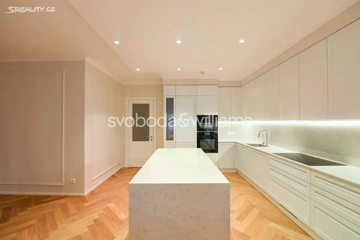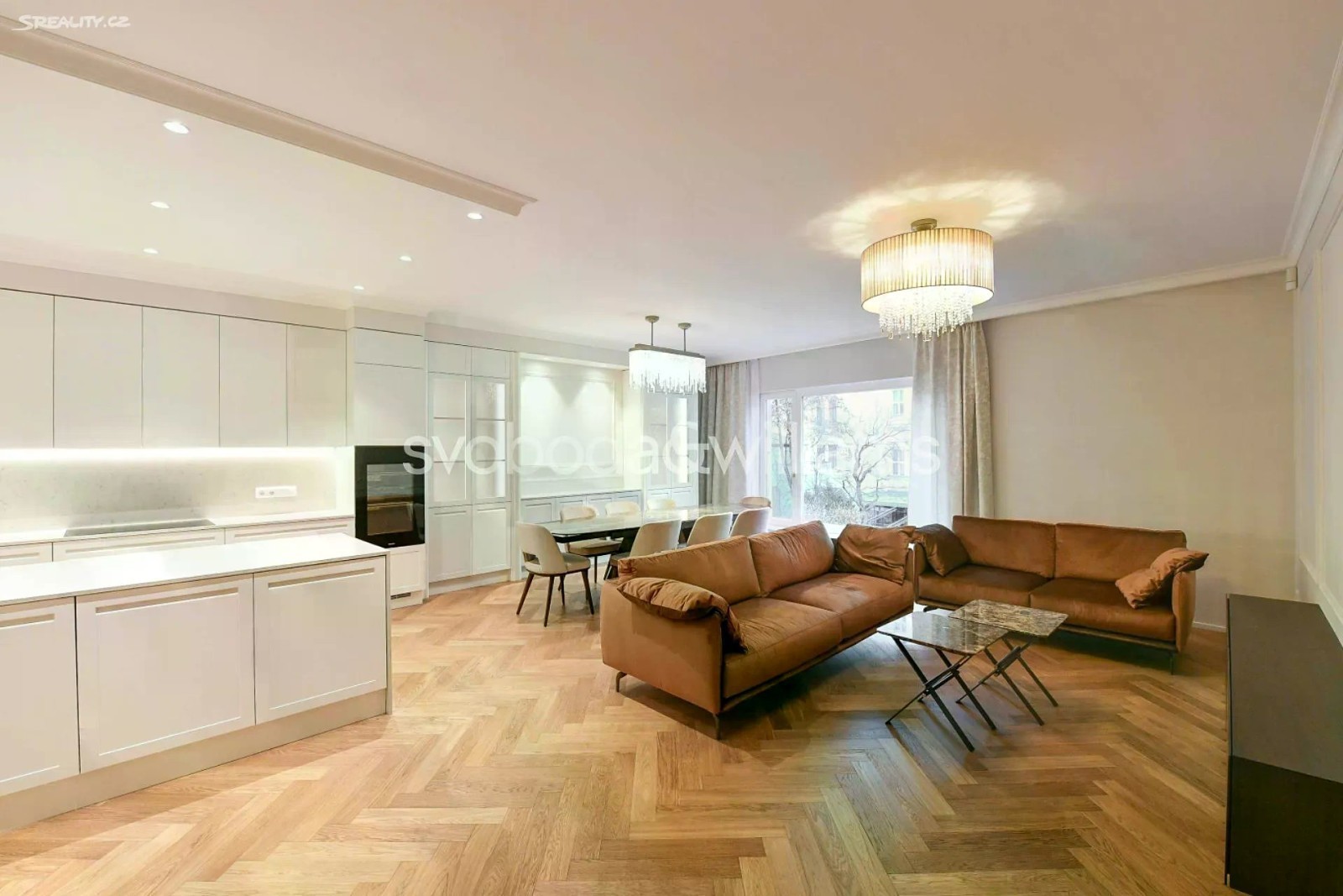 Noblesní čtyřpokojový byt s výhledem do tichého vnitrobloku a okouzlující zahrady, který disponuje parkovacím stáním, představuje kombinaci moderního komfortu, historického šarmu a exklusivní polohy přímo v centru města, v pěším dosahu všech služeb. Dispoziční řešení plně zařízeného bytu sestává z prostorného obývacího pokoje s kuchyní a velkým jídelním stolem, hlavní ložnice s en-suite koupelnou a walk-in šatnou, 2 dalších neprůchozích ložnic, 2. koupelny s vanou i sprchovým koutem, samostatné toalety a praktické komory se zvukovou izolací pro umístění pračky a sušičky. K bytu přísluší nadstandardně velké parkovací stání v zakladači a sklep v suterénu. Interiér byl v roce 2024 nákladně zrekonstruován v nejvyšším standardu pod dohledem renomovaného architektonického studia. Na podlahách jsou položeny třívrstvé dřevěné parkety, v koupelnách velkoformátová dlažba. Interiérové dveře značky Pivato a kuchyň Scavolini s pracovní deskou Technistone a vestavěnými spotřebiči Miele přidávají na exkluzivitě. Koupelny od Elite Bath jsou vybaveny prémiovou sanitou značek Villeroy & Boch, Grohe či Gessi. Elegantní design doplňuje vestavěný nábytek na míru od Presotto, pohovky Ditre a postele Oasis. Atmosféru dotvářejí křišťálové lustry na míru od výrobce Wranovsky a stmívatelné osvětlení. Okna jsou dřevěná s izolačním dvojsklem. Byt je zabezpečen systémem Jablotron. Tepelný komfort zajišťují radiátory a podlahové topení v koupelnách, v domě je umístěna centrální kotelna. Zrekonstruovaná historická budova z 19. století dále nabízí recepci s nepřetržitým provozem a výtah. Skvělá adresa v samém srdci Prahy 1 vyniká blízkostí kulturních a historických památek, množstvím restaurací, kaváren a obchodů v okolí a perfektní dopravní obslužností (všechny trasy metra i několik tramvajových zastávek v pěší vzdálenosti). Ke krásným procházkám s výhledem na město láká park Vítkov, k němuž vede cyklostezka od nedalekého Hlavního nádraží. Podlahová plocha 131,24 m2, sklep 3,56 m2.