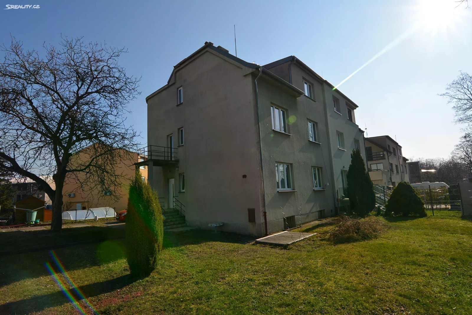 Nabízíme ke koupi byt 3+1 s podílem na dalších částech vily o celkové užitné ploše 324 m2 a taktéž na pozemku o rozloze 497 m2. Jedná se o prodej ideální poloviny nemovitostí ve vilové čtvrti vedle Ďáblického háje a pouhých 22 min chůze do stanice metra Ládví. Dle současného uspořádání spolumajitelů je k dispozici mezonetový byt 3+1 ve II. NP s podkrovní ložnicí ve II. NP, dále podíl na bytu ve zvýšeném přízemí a na společných částech domu a pozemcích. V domě jsou celkem tři byty, každý z nich má samostatný vchod ze společného schodiště. V suterénu jsou další společné prostory, v současné době sloužící jako sklady a sklepy. V minulosti se však i tyto prostory využívaly k bydlení. Dům je ve velice dobrém stavebně technickém stavu, je napojen na veškeré inženýrské sítě, na pozemku je navíc studna. Krásná klidná lokalita s výbornou dostupností do centra, na pražský okruh a D8.