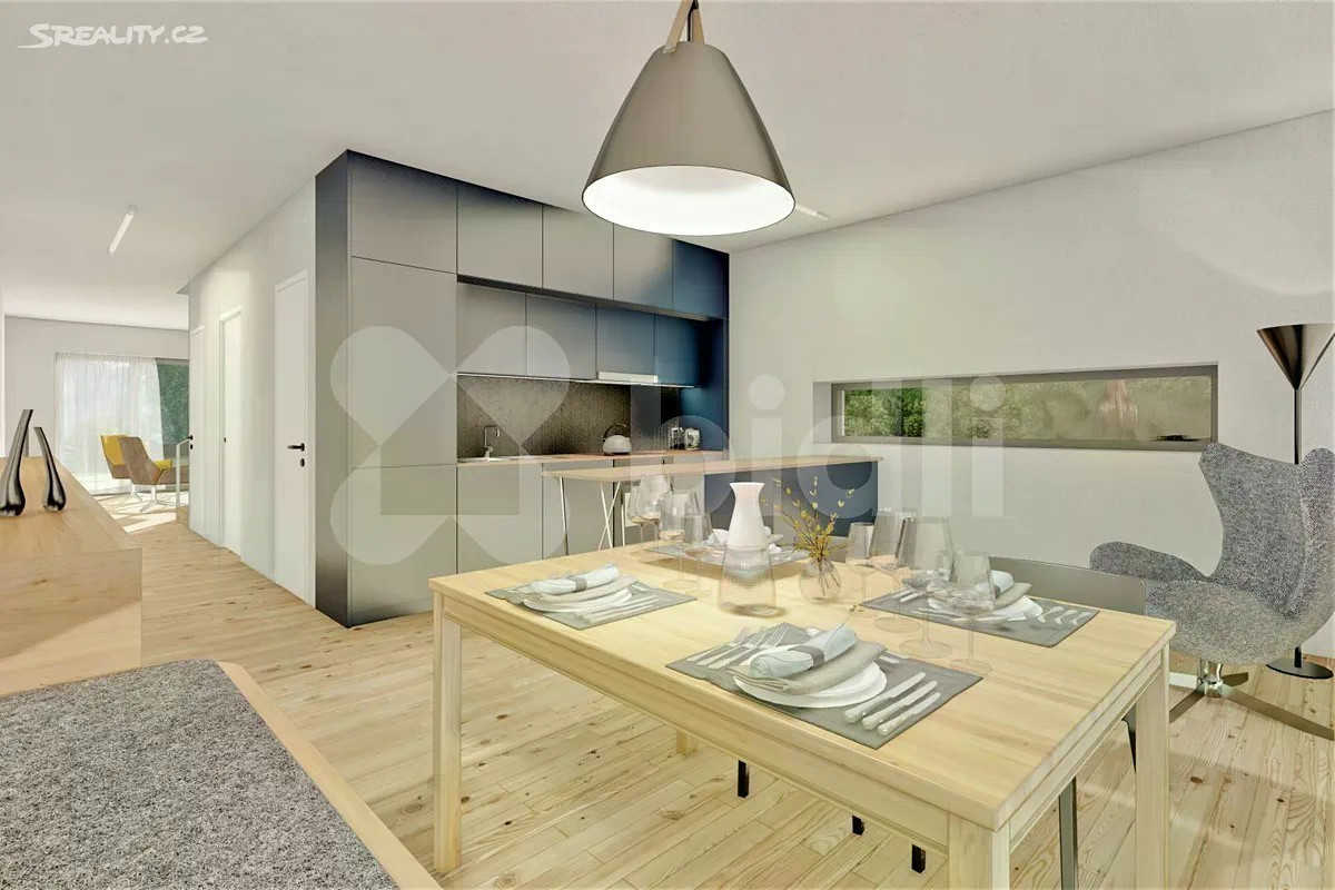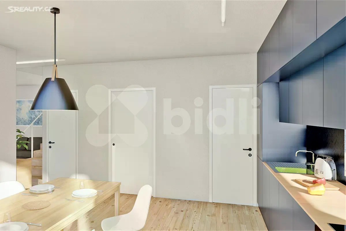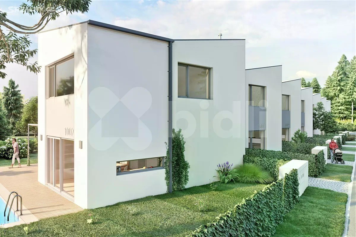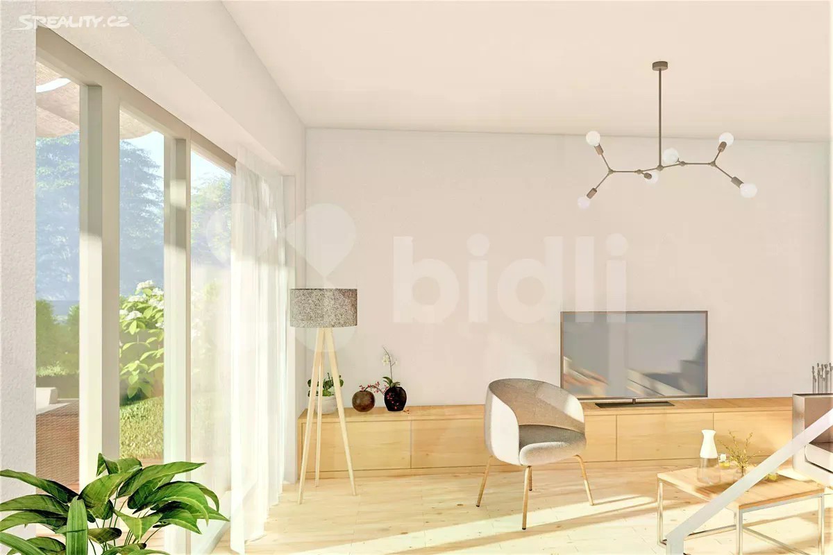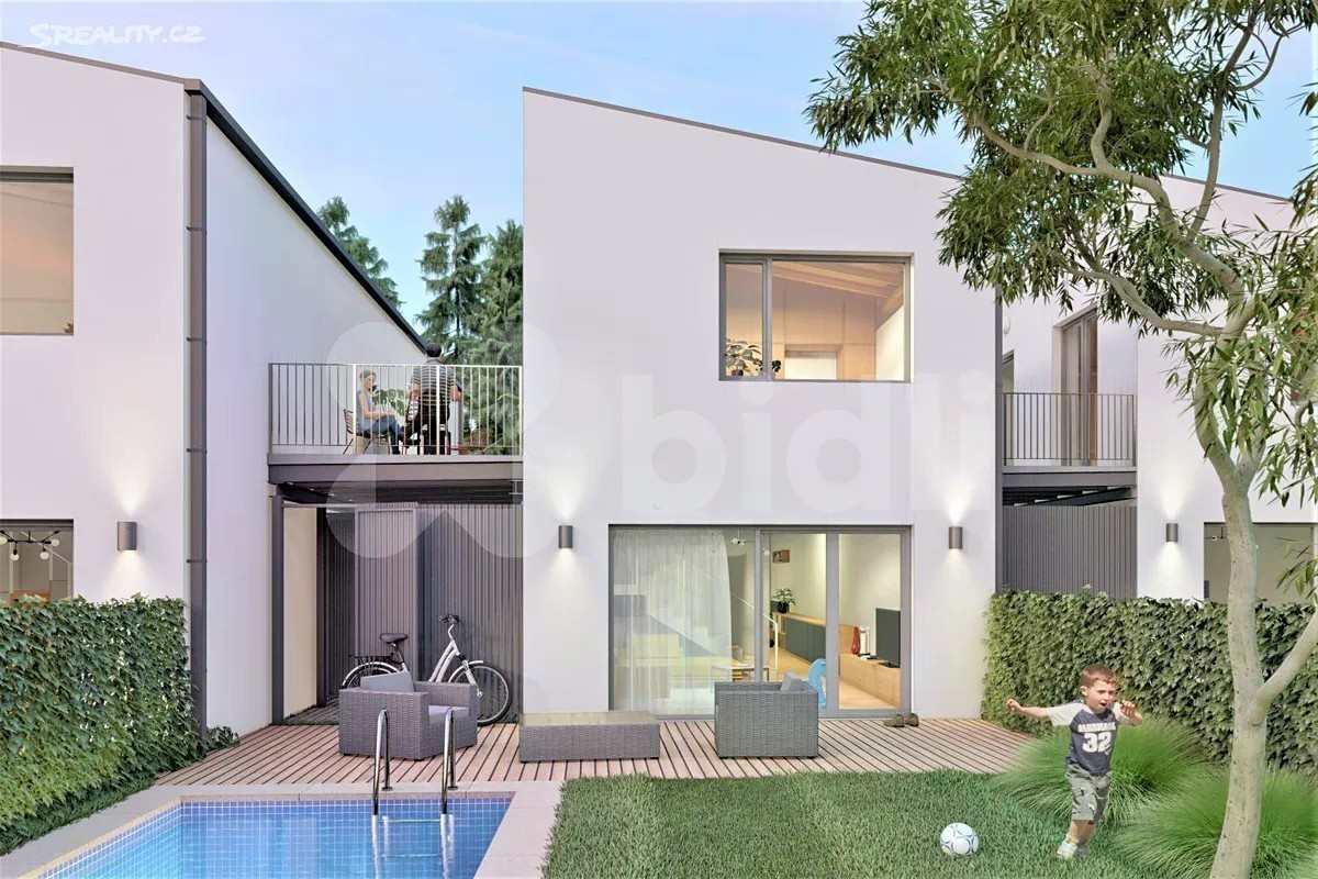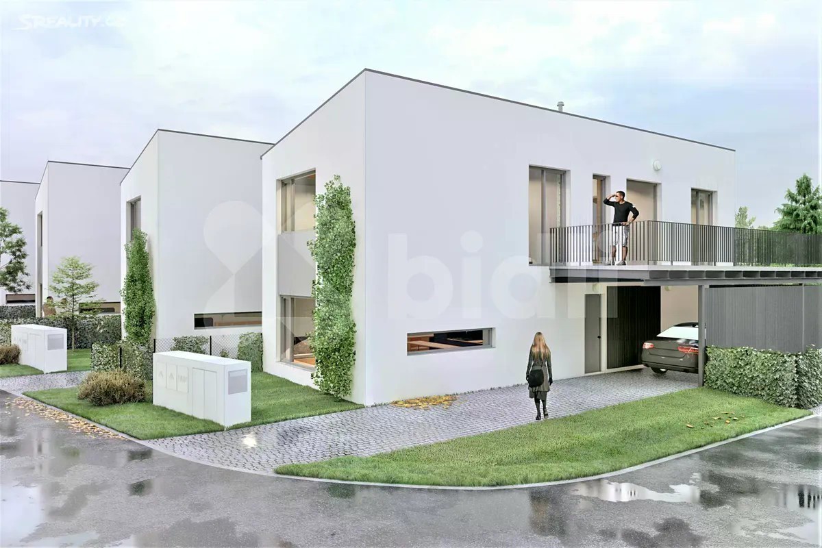 STAVBA ZAHÁJENA. Dokončení ve 1. čtvrtletí 2026. Výhodou je forma financování. Platíte 10 % kupní ceny při uzavření SOSBK, zbývající část kupní ceny až po kolaudaci. Bidli nabízí k prodeji řadový rodinný dům 4+1 v novém developerském projektu Sedmdomů v okrajové části Kladna. Jedná se o projekt sedmi moderních řadových domů 4+1 se zahradou, v klidné lokalitě, ideální pro rodinné bydlení, nacházející se na okraji Kladna, ve slepé ulici, mimo hlavní dopravní tahy. Domy budou postaveny "na klíč", včetně oplocení a základních terénních úprav. Zahradami sousedí s loukou, zahrádkářskou kolonií a vzrostlým lesem. Jsou převážně severojižní orientace, s mírným natočením delší stranou na jihovýchod. Oddělení jednotlivých domů garáží s terasou nabízí obyvatelům dostatek soukromí. Pultová střecha je navržena tak, aby co nejméně stínila domu sousednímu, což zajišťuje světlost interiérů. V přízemí domu S 03, s celkovou užitnou plochou 165 m2, se nachází zádveří (6 m2), WC (2 m2), chodba (10 m2), samostatná kuchyně s jídelnou (21,5 m2), spíž (2 m2), obývací pokoj (18,5 m2) s přímým vstupem na zahradu, 2 x sklad (2 m2 a 4,5 m2) a garáž (15,5 m2). V patře jsou 3 neprůchozí pokoje (17 m2, 10 m2, 11,5 m2) s prostornou koupelnou (6,5 m2) a s terasou (27,5 m2). V celém domě bude podlahové topení. Vytápění bude zajišťovat tepelné čerpadlo All-in-one. Dům bude napojen na splaškovou kanalizaci a obecní vodovod. Celková velikost pozemku parc. č. 828/15, na němž se dům nachází, je 338 m2. Výhodou je způsob financování. Při podpisu Smlouvy o smlouvě budoucí kupní se platí pouze 10 % kupní ceny domu, zbývající část kupní ceny se hradí až po kolaudaci domu. Kladno je okresním a zároveň největším městem ve Středočeském kraji s veškerou občanskou vybaveností. Je zde velký počet školek, ZŠ, střední školy a dokonce 2 vysoké školy, lékaři, obchody, restaurace, sportovní kluby, Aquapark, hřiště, parky.