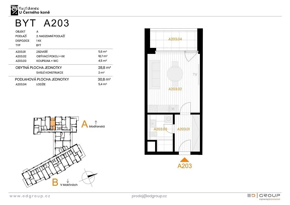 Prodej bytů v projektu Rezidence U Černého koně - Praha 4, Hodkovičky Projekt bude dokončen v roce 2027. Rezidence U Černého koně je moderní bytový dům situovaný v prestižní lokalitě Praha 4 - Hodkovičky. Projekt nabízí celkem 55 bytových jednotek o dispozicích 1+kk až 3+kk, rozmístěných ve čtyřech nadzemních podlažích. Ke každému bytu náleží sklep, který je zahrnut v ceně jednotky. Garážové stání je možné dokoupit. Přízemní byty disponují vlastními zahradami, byty ve vyšších podlažích pak terasami nebo balkóny s výhledy do zeleně a okolní vilové čtvrti. Energetická náročnost budovy je PENB B - nízkoenergetické, úsporné bydlení. Milovníci přírody ocení blízkost lesoparku a Vltavy, kde si mohou užít cyklostezky, běžecké trasy a klidné procházky v zeleni. Zároveň je v okolí kompletní občanská vybavenost - obchody, restaurace, školy, školky, dětská hřiště i sportovní areály jsou v docházkové vzdálenosti. Lokalita je ideální nejen pro řidiče, ale i pro rezidenty využívající MHD. V docházkové vzdálenosti se nachází tramvajové i autobusové zastávky, které umožňují rychlé spojení do centra Prahy i do dalších částí města.