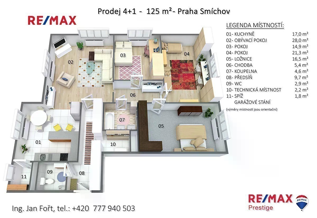 Hledáte výjimečné bydlení v jedné z nejžádanějších pražských lokalit? Exkluzivně nabízíme k prodeji prostorný byt 4+1 o rozloze 124 m² v ulici Na Hřebenkách na Smíchově. Tento byt splní i ty nejnáročnější požadavky na komfortní a klidné bydlení v srdci Prahy. Dům je zateplen s novými plastovými okny. Dispozice bytu: - Prostorná kuchyně (17 m²) - Velkorysý obývací pokoj (28 m²) - Dva pokoje (14,9 m² a 21,3 m²) a ložnice (16,5 m²) - vše orientované do soukromé zahrady na jihovýchod, která zajišťuje dostatek světla a soukromí - Chodba (5,4 m²) a předsíň (9,7 m²) - Koupelna (4,6 m²) a samostatné WC (2,9 m²) - Technická místnost (2,2 m²) s vlastním plynovým kotlem - Praktická spíž (1,8 m²) - pro všechny vaše zásoby Byt si můžete projít i virtuální prohlídkou Další benefity: Bezbariérový vstup - pohodlný přístup pro všechny generace Garážové stání v ceně - bezpečné a pohodlné parkování přímo v domě Soukromá zahrada - skvělé místo pro odpočinek, grilování či dětské hry Byt je situován v klidné a zelené části Smíchova, s výbornou dostupností do centra města i k veškeré občanské vybavenosti. V bezprostřední blízkosti najdete parky, kavárny, školy i sportovní vyžití. Pro více informací či domluvení prohlídky nás neváhejte kontaktovat.