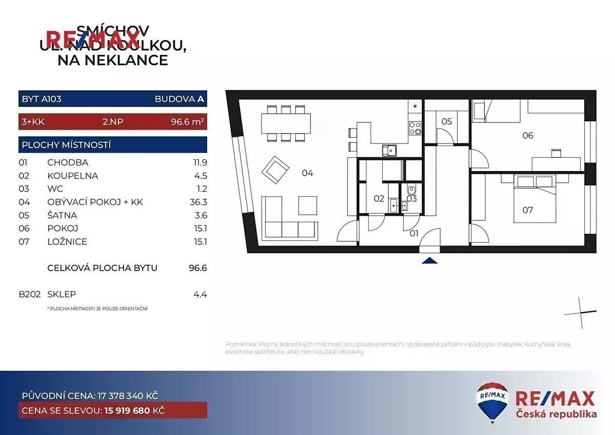 Hledáte moderní bydlení v klidné lokalitě s výbornou dostupností centra Prahy? V oficiálním zastoupení představujeme unikátní rezidenční projekt přímo od developera. Nabízíme prostorný byt 3+KK o rozloze 96 m² ve třetím patře moderního bytového domu. Byt je krásně prosvětlený díky velkým oknům, která do něj vpouštějí spoustu přirozeného světla. K bytu navíc patří sklepní kóje o velikosti 4 m², která poskytuje dostatek úložného prostoru. K dispozici je také možnost zakoupení parkovacího místa. Rezidenční bydlení tvoří tři bytové domy se společným vnitroblokem. Projekt je navržen ve vysokém standardu, který odpovídá prestižní lokalitě v Praze. Byty mají velká okna poskytující nádherný výhled na přírodu a panorama Prahy. Interiéry jsou vybaveny eurookny s trojsklem, vinylovými podlahami, velkoformátovou dlažbou v koupelnách a WC, vchodovými dveřmi a hladkými bílými interiérovými dveřmi s grafitovým kováním. V koupelně je umyvadlo se skříňkou, vana a závěsné WC značky Willeroy&Boch. Lokalita nabízí blízkost přírody a zároveň skvělou dostupnost do centra Prahy. Oblíbená lokalita Anděl je 3 minuty autem, 10 minut hromadnou dopravou nebo 20 minut pěšky a nabízí kompletní občanskou vybavenost - nákupní centrum, restaurace, kavárny, stanici metra B a proslulou Náplavku. Nejbližší tramvajová zastávka je pouze 2 minuty chůze. Nová cena bytu se slevou. Byt je k nastěhování ihned. K dispozici máme také další krásné a prostorné byty 2+KK až 3+KK. Rádi Vám pomůžeme s možností financování hypotečním úvěrem. Kontaktujte nás ještě dnes a domluvte si prohlídku!