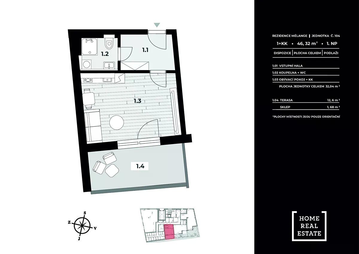 «Home Real Estate» ve výhradním zastoupení majitele nabízí k prodeji ateliér s dispozicí 1+kk o velikosti 32,04 m² s terasou o výměře 12,6 m², který se nachází v 1. NP rezidence Mélange v žádané městské části Praha 5 - Smíchov. Novostavba s bezbariérovým přístupem a výtahem. Průkaz energetické náročnosti budovy třídy "B". V ceně jednotky jsou zahrnuty: - kuchyňská linka včetně spotřebičů - sklepní kóje o výměře 1,68 m² Dispozice jednotky tvoří: - vstupní chodba - koupelna se sprchovým koutem a WC - prostorný obývací pokoj s kuchyňským koutem (včetně kuchyňské linky a spotřebičů) - terasa 12,6 m² - sklep 1,68 m² Rezidence Mélange nabízí svým obyvatelům luxus spojený s inovativními řešeními pro pohodlný život. Standardy: Zaměření na vysokou kvalitu je patrné například v koupelnách s obložením z velkoformátových dlaždic Graniti Fiandre a sanitárním vybavením od prémiových značek GROHE a Villeroy & Boch. Všechny byty jsou rovněž vybaveny dřevěnými francouzskými okny. Inovativní systém podlahového vytápění s nezávislou regulací teploty v každé místnosti zajišťuje komfort i během chladných dnů a umožňuje absenci radiátorů na zdech, čímž se zvyšuje celková estetičnost a variabilita prostoru bytů. Luxusní vinylové EKO-podlahy v obytných místnostech jsou nejen moderní, ale díky své zvýšené odolnosti i velmi praktické. Stavba projektu byla provedena ve vysokém standardu: luxusní dřevěné podlahy Vinyl Winflex od Floor Experts, interiérové dveře Vetos, v koupelně stylové keramické dlažby Graniti Fiandre Core Shade, závěsné WC a umyvadlo od Villeroy & Boch. Lokalita: Praha 5 - Smíchov dnes patří mezi nejatraktivnější části Prahy. Důvodem je především jeho skvělá dostupnost, občanská vybavenost a poloha v širším centru města. Rezidence Mélange těží ze všech těchto výhod. Rezidence je dobře dostupná jak individuální, tak veřejnou dopravou. Důležitá dopravní tepna metra "B" se stanicemi Anděl nebo Smíchovské nádraží se nachází v docházkové vzdálenosti. Stejně daleko je i významné obchodní centrum Nový Smíchov, dva multiplexy, banky, restaurace a divadla. Sama rezidence je však díky svému umístění chráněna před městským ruchem. Cena: 6.485.000 Kč včetně DPH, právního servisu a provize RK. K jednotce lze dokoupit parkovací stání v kryté garáži za 850.000 Kč včetně DPH. Aktuální foto jsou v přípravě. Vřele doporučujeme na investici nebo pro vlastní využití. Pro více informací a možnost prohlídky kontaktujte makléře nebo vyplňte formulář níže.