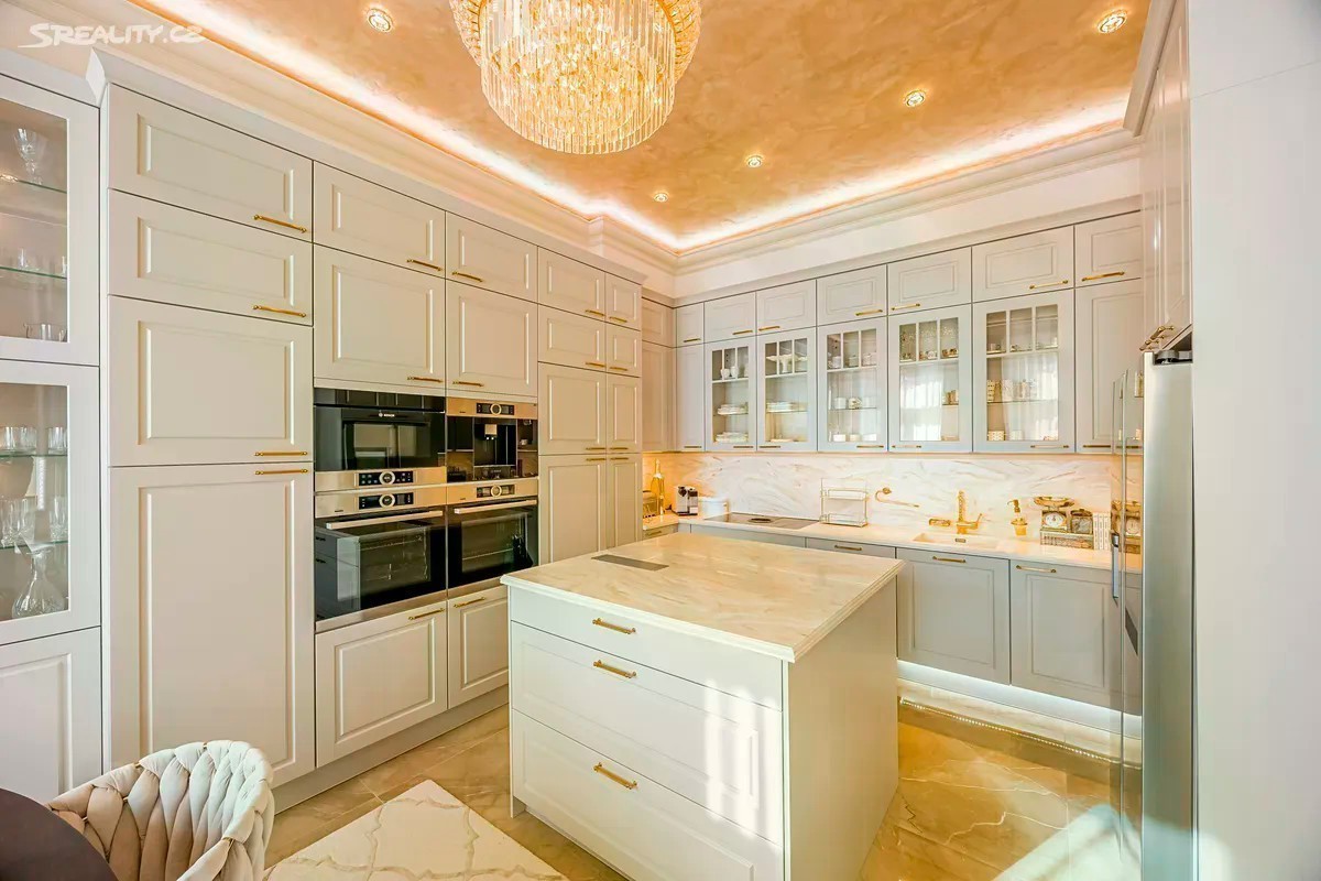 Sotheby's Int. Realty Czech Republic nabízí k prodeji zrenovovaný byt o dispozici 3+1 a podlahové ploše 112 m2. Byt je situovaný ve čtvrtém nadzemním podlaží činžovního domu z roku 1895, jen pár kroků od Karlova mostu v jedné z nejmalebnějších částí historické Prahy. Interiér bytu prošel kompletní velmi nákladnou rekonstrukcí, po které nebyl dosud obýván. Mezi prvotřídní vybavení patří podlahové topení, luxusní velkoformátová dlažba ProCeram a zdobné fabiony značek Artcapite a Orac. Stěny jsou opatřeny dekorativními stěrkami, originální repasovaná okna i dveře podtrhují historický charakter prostoru. Obývací pokoj s elektrickým krbem je orientován na jih do ulice Mostecká, přičemž dvojitá okna doplněná nanofólií zajišťují klid a stabilní tepelný komfort. Ložnice jsou orientované na sever do tichého vnitrobloku. Kuchyňská linka vyrobená na míru je osazena obkladem a pracovní deskou z umělého kamene Corian. Součástí vybavení kuchyně jsou integrovaná vinotéka, varná deska s integrovanou digestoří, vestavné spotřebiče Bosch, exkluzivní baterie Swarovski. Koupelnové doplňky a nábytkové úchytky jsou rovněž značky Swarovski, sanitární prvky od Villeroy & Boch. V bytě jsou nové veškeré instalace, elektro, rozvody vody, atd. Vytápění bytu zajišťuje vlastní kotel. Kompletní osvětlení jednotky je řešeno kombinací závěsných a přisazených křišťálových lustrů Swarovski. Ovládání osvětlení exkluzivními vypínači FEDE. Pro zajištění maximálního soukromí a klidu jsou stěny sousedící s vedlejší bytovou jednotkou na podlaží odhlučněny, bezpečnost zajišťuje systém Jablotron. Byt se prodává včetně veškerého vybavení, volně stojícího nábytku a nábytku na míru. Dům je v dobrém technickém stavu, s novou fasádou a výtahem z roku 2016, vstupní chodba prošla renovací v roce 2020. Byt je k ihned k dispozici pro nastěhování. Lokalita - Praha 1 - Malá Strana Malá Strana patří k nejpůvabnějším částem Prahy, skrývající historické skvosty jako Kampu, Čertovku, Malostranské náměstí, úpatí Petřínského vrchu a západní část Karlova mostu. Tato prestižní lokalita je nejen kulturním centrem, ale také sídlem významných institucí, včetně parlamentu, vlády a mnoha ambasád. V okolí se nachází prvotřídní restaurace, butiky, galerie i veškerá občanská vybavenost. Skvělou dopravní dostupnost zajišťuje tramvajová zastávka Malostranské náměstí (2 minuty chůze) a stanice metra Malostranská (linka A) je dosažitelná za 7 minut pěšky. Oblast je snadno přístupná i autem, což z ní činí ideální místo pro bydlení i investici.