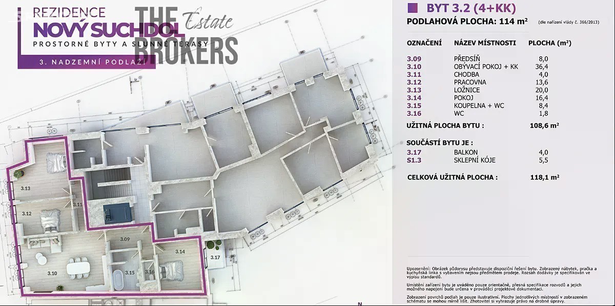 Prodej v developerském projektu Praha 6 - Suchdol Lokalita: Nabízíme k prodeji moderní byt 4+kk v novém, již zkolaudovaném developerském projektu v žádané lokalitě Praha 6 - Suchdol.V okolí je velké množství zeleně. Na jedné straně sousedí s břehem řeky Vltavy, na straně druhé s přírodní rezervací Údolí Únětického potoka a Roztockým hájem.Tento projekt se vyznačuje ideální dostupností do Prahy 6 - Dejvice, která je vzdálená pouhých 10 minut jízdy. Klidné a tiché prostředí je ideální pro rodiny i jednotlivce, kteří hledají rovnováhu mezi poklidným bydlením a blízkostí rušného velkoměsta. Byt: Tento prostorný byt 4+kk o celkové rozloze (117,7 m2) se nachází v prvním patře rezidenčního komplexu. Nabízí prostorný obývací pokoj s kuchyňským koutem, tři pokoje, koupelnu s toaletou, samostatnou toaletu a komoru ( 101,2m2). Z jedné ložnice je vstup na terasu ( 11m2). Součástí bytu je sklepní kóje ( 5,5m2). K jednotce lze dokoupit parkovací stání. Ideální pro rodinné bydlení. Vybavení a standard: Dům plní nejvyšší standardy stavby - francouzská okna s trojsklem, akustické stěny, kvalitní zateplení, příprava pro osazení venkovního stínění, sanita od špičkových výrobců - Villeroy Boch, GROHE, LAUFEN, HÜPPE a další. V místnostech jsou vysoce kvalitní velkoformátové dlažby, obklady a celoplošně lepené dřevěné podlahy. Výhody projektu: Většina bytů je nyní shell and core a Vy tak máte jedinečnou možnost vytvořit si bydlení dle svých představ. S vizualizací Vám rádi pomůžeme. Skvělá dopravní dostupnost, zastávka MHD hned před domem, rychlé spojení do centra Prahy a zejména do Dejvic. Výborné spojení na letiště Václava Havla. V okolí se nachází kompletní občanská vybavenost - školy, školky, obchody, restaurace, sportovní a kulturní zařízení. Projekt je zasazen do klidného a zeleného prostředí, ideálního pro volnočasové aktivity a rodinné procházky. Budova je navržena s ohledem na energetickou úspornost a ekologickou šetrnost. Energetická náročnost budovy B. V domě je kočárkárna a kolárna. Perfektní zvuková a tepelná izolace. Vysokorychlostní internet - optický kabel. UPS záložní systém při výpadku elektřiny. Kočárkárna a kolárna v domě.K bytu je možno dokoupit garážové stání v podzemních garážích. Zažijte moderní a komfortní bydlení v klidné lokalitě s vynikající dostupností do centra města. Jsme tu po Vás. Nestavíme jen byty, tvoříme domovy.